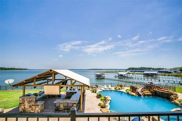 Beautiful resort like estate on almost 2 acres, with unobstructed views of open water! Four homes with an eight plus car garage, that includes a huge banquet area above the garage including a 50 Amp RV plug. This is a party paradise, a huge resort style, heated swimming pool. HUGE outdoor kitchen and bar area. Not one but two fire pits, one on each side of the property. Don't forget about the lush putting green. Zero expense was spared in this absolutely gorgeous property. Mineral rights do not convey