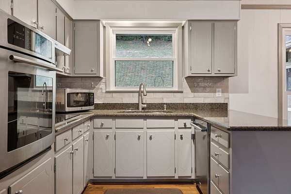 - Built-In Electric Oven, Cooktop, Dishwasher, Dryer, Electric Range, Refrigerator, Stainless Steel Appliance(s), Washer