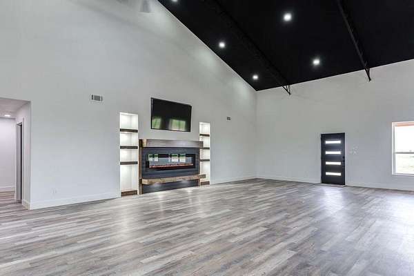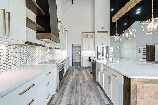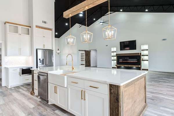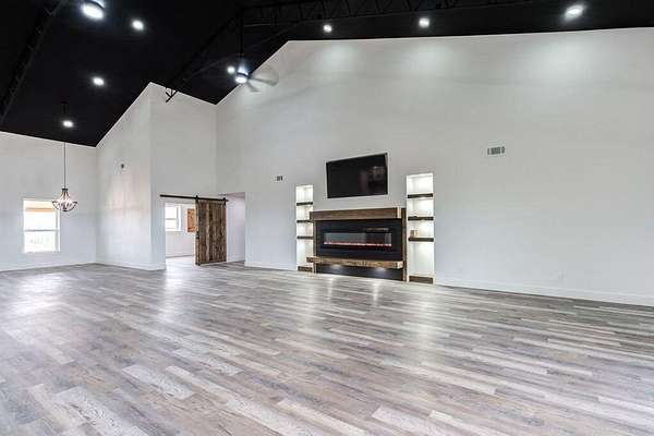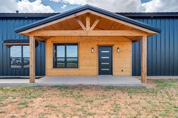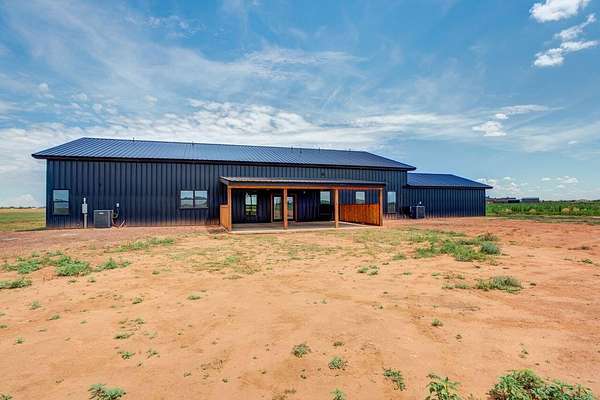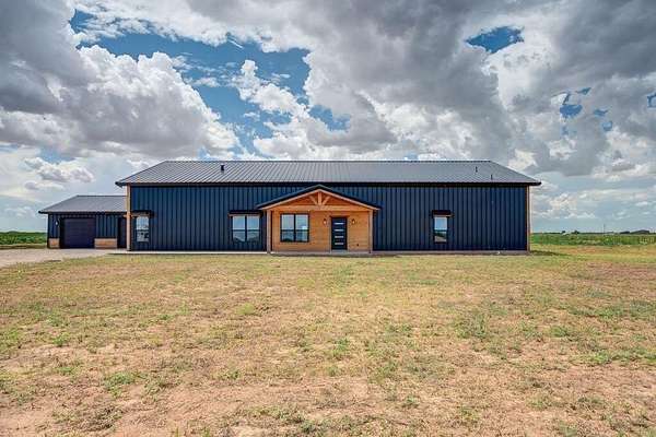 Modern luxury meets Texas charm in this stunning home! This 4/3.5/2 Barndo featuring 4,200sf is located on 10 acres in the highly sought after Shallowater ISD with limited deed restrictions. Attention to detail in every aspect from the show stopping kitchen with over sized custom cabinetry, large island with quartz countertops, Thor appliances, under cabinet lighting, walk in butlers pantry with sink, to the mini bar with beverage cooler and ice maker. Featuring soaring ceilings, two mud bench areas, spa-inspired master bathroom that includes 5x10 3 head double shower, spacious walk-in closet that adjoins to the large laundry room that includes a pet washing station. The home also features a large office, 84" fireplace, 75" flat screen, a bathroom attached to all additional bedrooms, foam insulation, an additional 1,000sf loft space that can be easily finished out as a game room or extra living space, and a 20x30 back patio to enjoy those beautiful West Texas sunsets!