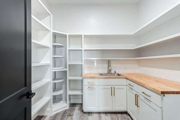 - Bar, Bookcases, Breakfast Bar, Built-In Features, Ceiling Fan(s), Chandelier, Double Vanity, Eat-In Kitchen, Entrance Foyer, High Ceilings, Kitchen Island, Natural Woodwork, Open Floorplan, Pantry, Primary Downstairs, Quartz Counters, Recessed Lighting, Smart Thermostat, Soaking Tub, Solid Surface Counters, Vaulted Ceiling(s), Walk-In Closet(s), Wet Bar, Wood Counters
