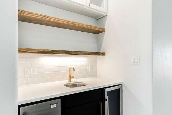 - Bar Fridge, Convection Oven, Dishwasher, Disposal, Electric Cooktop, Electric Oven, Electric Range, Exhaust Fan, Free-Standing Range, Microwave, Oven, Range Hood, Refrigerator, Stainless Steel Appliance(s), Wine Refrigerator