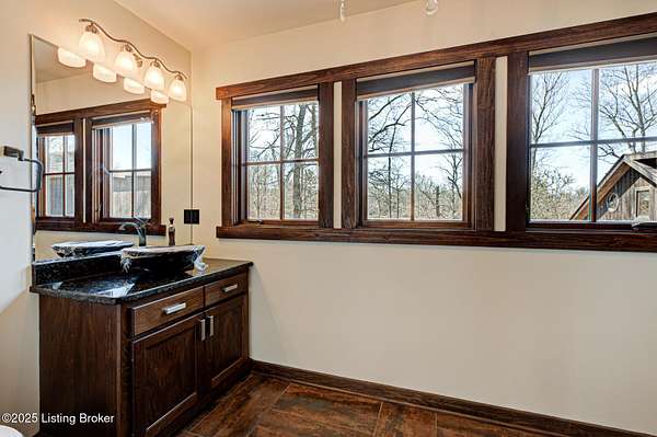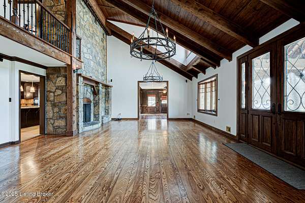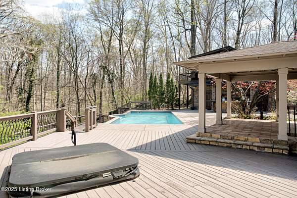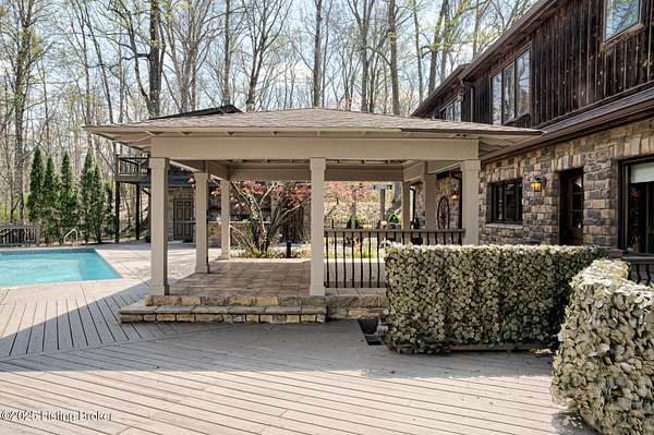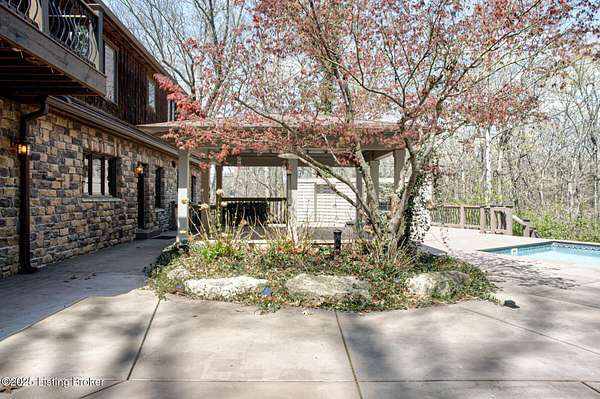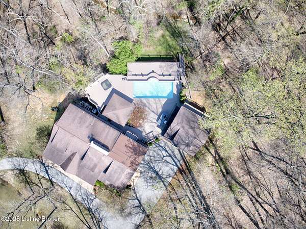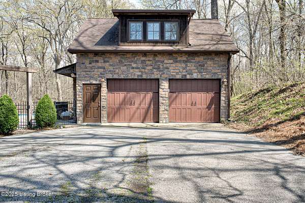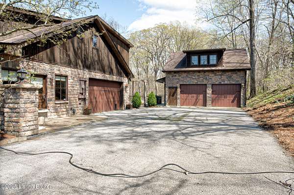 Back on the market! Buyers did not perform...Tucked away on over 10 acres in Jefferson Co., this stunning home is designed for year-round enjoyment. Priced below recent appraisal. Offering over 4,100 square feet of living space, it includes a separate carriage house and an inground pool. The spacious, open floor plan features a grand great room with vaulted ceilings, exposed beams, and a striking limestone fireplace. Throughout the home, custom wood details and built-ins add a touch of elegance. travertine floors and Brazilian granite countertops. On the main level, you'll find a guest bedroom and a full bath with a standing shower. Upstairs, the luxurious primary suite boasts a sitting area with a cozy fireplace, a bar with a beverage fridge, and a private balcony with wooded views The dining area flows into a chef's kitchen. On the second floor...an additional bedroom and full bath, as well as a versatile office or exercise room. The property includes both a two-car attached garage, and a separate two-car detached garage. Above the detached garage, there's a charming carriage house with a kitchenette, living area, and a full bathroom. Outdoors, enjoy the serene creek that winds through the wooded landscape, along with a pool, hot tub, outdoor kitchen, terraced seating, and a covered pergola...perfect for entertaining or enjoying peaceful solitude. The property is conveniently located near the Parklands. The pool is heated volleyball fresh water 10K pool built in by Gym and Swim 2010. Jacuzzi is added 2021. A hot and cold dog station in carriage house garage. Don't miss the opportunity...schedule your private showing today!