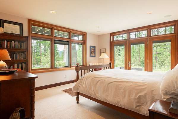 Missoula, Montana is an epic mountain town, the place where the Bitterroot, Blackfoot and Clark Fork rivers become one, the gateway to hiking and mountain biking trails that stretch for miles, a community that celebrates alpine, cross-country and back-country skiing in the winter and then surfs the downtown river wave all summer, and a city steeped in culture thanks to a modern art museum, a symphony orchestra, an outdoor amphitheater that attracts big-city acts, and galleries and restaurants that bring far-away places nearer. And amidst all that is known and special about Missoula, there is a little secret...five very special home sites, carefully separated from one another, and sharing over 135 acres of privately deeded, Montana conservation land located not hours from Missoula's downtown, hospital and airport, but minutes. Preserved in perpetuity by conservation easement, and adjacent to the Rattlesnake National Recreation Area, the five property owners who share undivided ownership of this incredible acreage are stewards of a piece of Montana mountain paradise. Nearly all of the home owners on Russian Joe Road are the original owners - they understood the vision to preserve this piece of habitat so close to Missoula, and built homes that honor this vision. This rare offering marks a moment that is unlikely to soon be repeated. Gated for privacy and security, Russian Joe Road is a paved, private road that winds upwards through acres of native fauna. With top-of-the-world views, and end-of-the-road privacy, this home is the jewel in the crown. The home was built in 2007 for the current owner by Missoula's Buckley Builders. Master craftsman Abbott Norris created the stunning woodwork and cabinetry. Designed to embrace the setting, the home exudes beauty by complimenting its surroundings, but never overwhelming the landscape. Large, triple-pane windows frame the magnificent mountain views from the entry and living room. Built-in bookshelves and lighted art nooks provide elegant, yet under-stated display areas. The kitchen is thoughtfully designed, outfitted with high-end appliances, and open to a casual living area. There are three beautiful fireplaces including one in the living/dining room, one in the kitchen/family room, and the third outdoors on the magnificent patio. The chef's choices are expanded by the outdoor propane grill that is plumbed into the home's propane source. The gracious primary suite is located on the main level of the home, as is the laundry room, complete with storage and a dog bath. The first of many garages is attached to the home on this level as well, and a separate, detached, heated garage is located just across the paved driveway. The daylight lower level of the home features a cozy living area plus two bedrooms, each with en suite baths. An office on this level is filled with custom storage and enjoys ground-level views of the wilderness area and mountains beyond, while a well-outfitted wine cellar wisely utilizes additional lower level space. And if the foreshadowing of garage space piqued interest...the car enthusiast, wood worker or tinkerer will be thrilled by the massive garage space located under the home's patio and accessible from the lower level of the home, as well as via the exterior garage door tucked into the back of the home. The mechanical systems of this home were designed for longevity and efficiency including the ground source heat pump for heating and cooling, and two forced air furnaces to provide supplemental heating and cooling on the main level when needed. Living in nature, hearing the absolute quiet and seeing the night sky, knowing the vastness of the public lands next door - these are the highlights that are sure to be shared by the next owners of this very special piece of Montana.