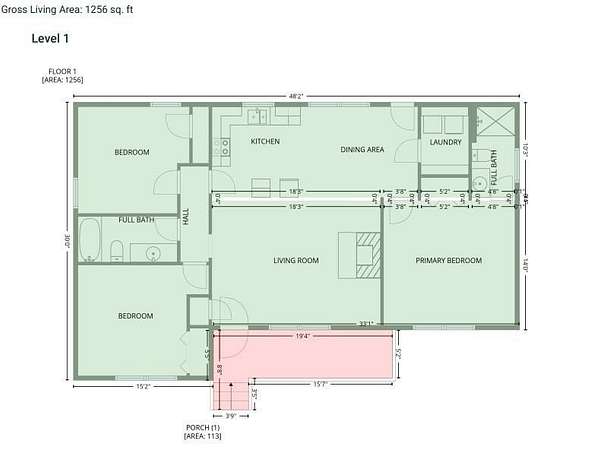- Bathroom x 2, Bedroom x 3, Laundry Room