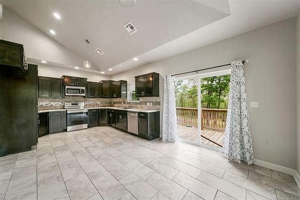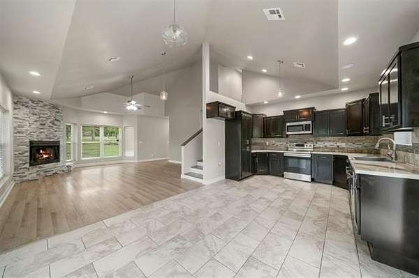 Beautiful home remodeled in 2019. At that time the roof was replaced, new electric, plumbing, water heater, cabinets, flooring, spray foam insulation were installed. Property has a 2 car carport and a pad for another 2 car garage or shop. A new aerobic system was installed late 2022 early 2023. Property is a corner lot close to Ft.Gibson lake. The property has a partially wooded lot. Owner/ agent. Seller willing to offer a 3-2-1 buy down on seller financing. Payments start at $2,225 per month, including property taxes and insurance. Owner financed w/25,000 down.