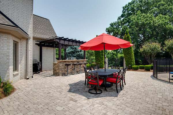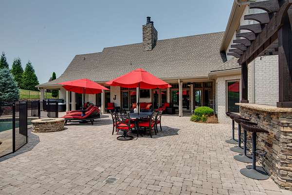 TOP RANKED SCHOOLS!! PRIVATE, GATED 3 acres. WOODED cul-de-sac. REMARKABLE custom home and pool, outdoor kitchen + bar seating. 4062 SF on main floor including Primary bedroom suite and a 2nd bedroom on the main floor with private bathroom, 2 bedrooms upstairs with 2 full baths. 5th bedroom/full bath in walk-out daylight BASEMENT with separate entrance (does not have a closet but there is unfinished space that adjoins the bedroom for a closet). Large gathering spaces. Lots of French doors/windows to VIEW the sunset from the front and VIEW of pool, patio and acreage from the back. RENOAVTED Primary suite. CUSTOM cabinetry office. COZY 2nd fireplace in the kitchen. 2-story dining room, great room and primary bedroom. 2 Geothermal and 1 Regular HVAC=amazingly low utility bills. Tankless water heater. 3 Car Garage, TREE fort and RAISED garden beds. 5 minutes to Arrington Vineyards. 10 minutes to Cool Springs. 15 minutes to downtown Historic Franklin. 30 minutes to downtown Nashville. Small pet possible. Owner will pay for pool care. 24 HOUR NOTICE please, possibly less--as tenant has young children.
