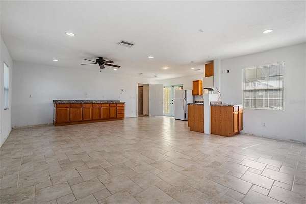 - Built-In Features, Ceiling Fans(s), Living Room/Dining Room Combo, Open Floorplan, Primary Bedroom Main Floor, Solid Surface Counters, Split Bedroom, Thermostat, Walk-In Closet(s)