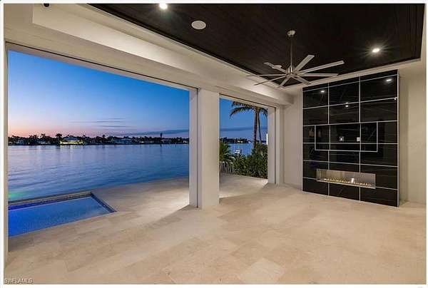 Outside, a breathtaking covered lanai unfolds into a private lakeside paradise — summer kitchen, outdoor fireplace, alfresco dining, and a heated pool and spa framed by elegant paver decking and the glittering expanse of Lake Sawyer. A 4-car garage with EV charging, dual laundry rooms, impact-rated windows and doors, and bespoke designer finishes complete this extraordinary offering.