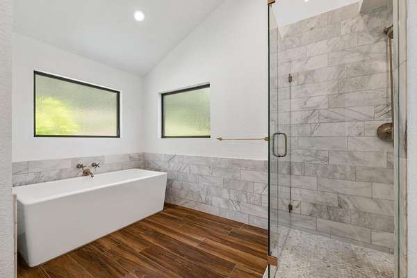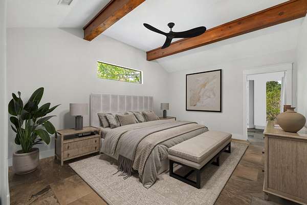 - Beamed Ceilings, Cathedral Ceiling(s), Cedar Closet(s), Ceiling Fan(s), Ceiling-High, Chandelier, Interior Steps, Multiple Dining Areas, Multiple Living Areas, Primary Bedroom On Main, Recessed Lighting, Track Lighting, Vaulted Ceiling(s)