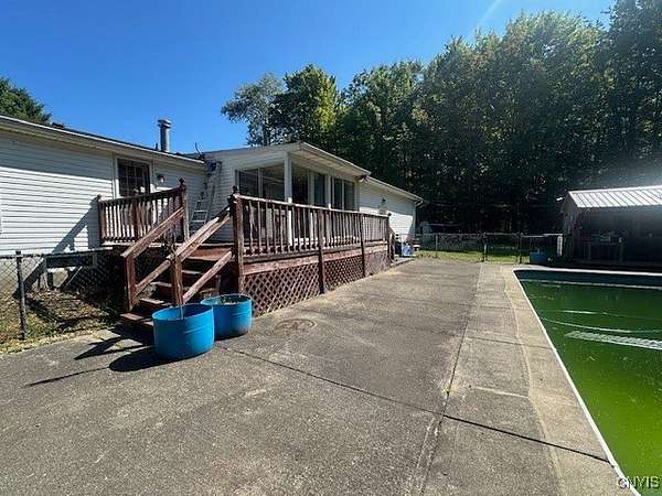Est $1,135/moProperty has 3 bedrooms and 2 full baths. Large family room, dining room and living room. Eat in kitchen has granite counter and plenty of storage. 2 car attached garage, chicken coop, pool house and a large detached garage. Property is being sold as is. Tons of machinery, tools and extras will convey with the house. Close to Salmon River and snowmobile trails