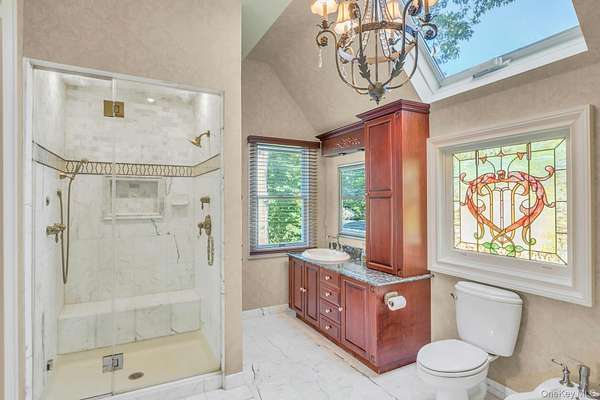 - Beamed Ceilings, Bidet, Built-In Features, Cathedral Ceiling(s), Ceiling Fan(s), Chandelier, Chefs Kitchen, Crown Molding, Double Vanity, Eat-In Kitchen, Entertainment Cabinets, Entrance Foyer, First Floor Full Bath, Formal Dining, Granite Counters, High Ceilings, High Speed Internet, His and Hers Closets, Natural Woodwork, Original Details, Primary Bathroom, Sound System, Stone Counters, Storage, Walk-In Closet(s), Washer/Dryer Hookup, Wired For Sound