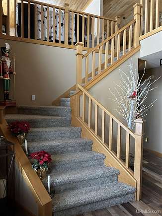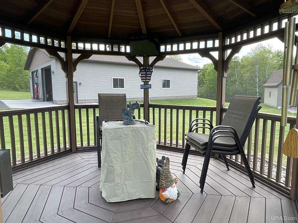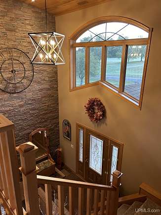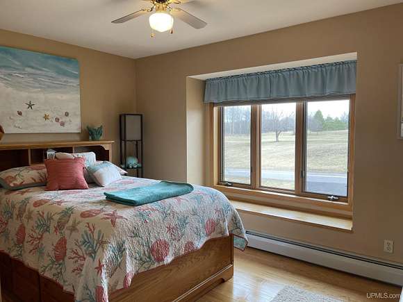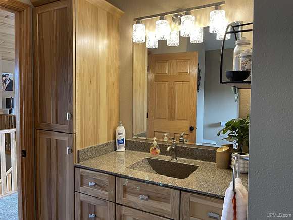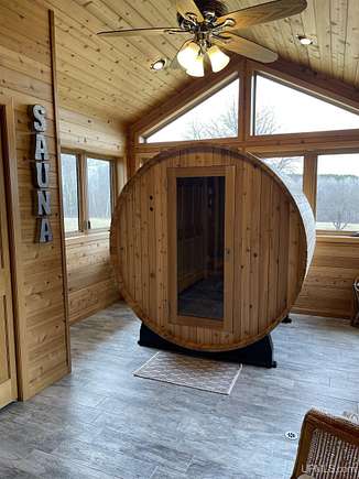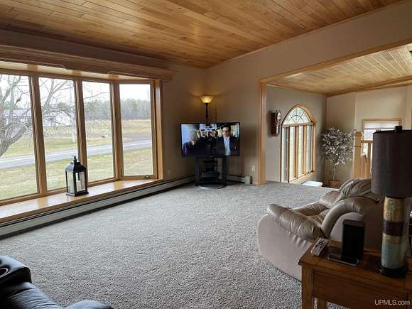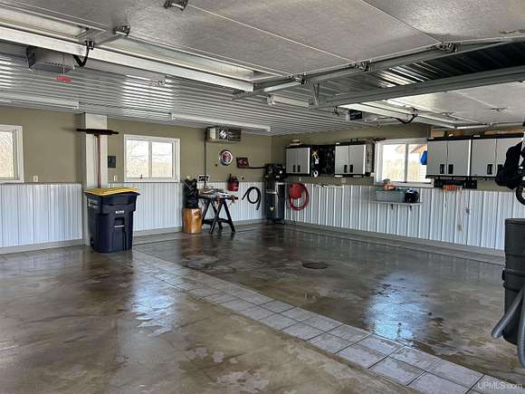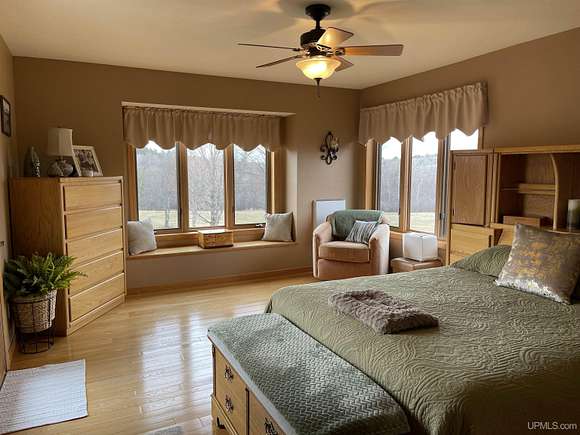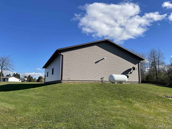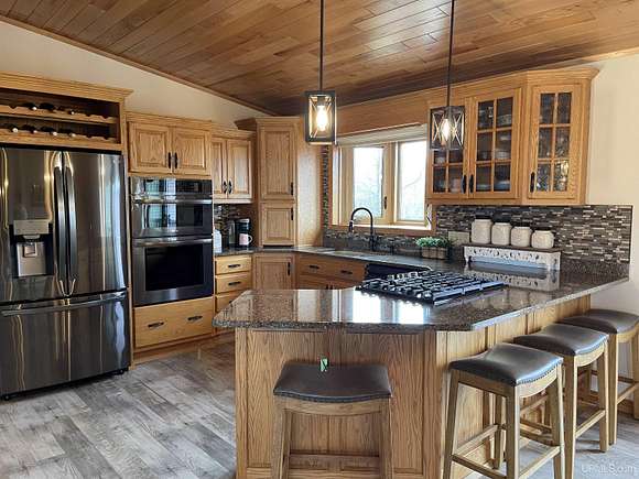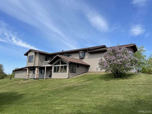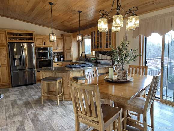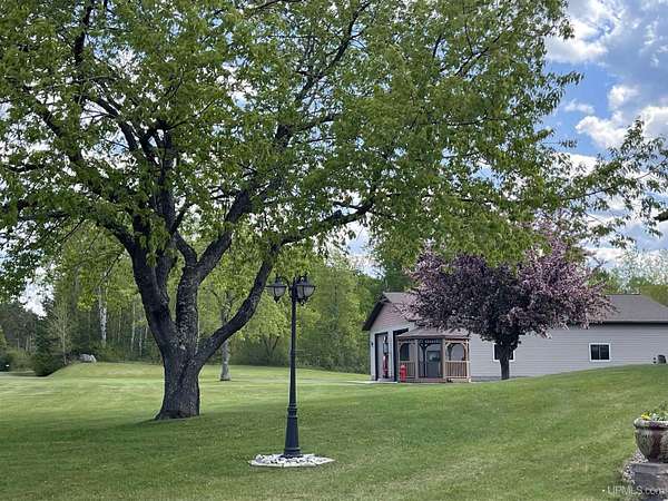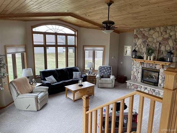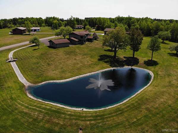 QUALITY CRAFTSMANSHIP presents a stunning 3-bedroom, 2-bath home situated on 19.61 acres. The main floor hosts a spacious master suite complete with a luxurious bath, walk-in closet, and a sauna that opens to a meticulously maintained backyard. A conveniently located laundry room adds to the ease of living. The entry welcomes you with split entry vaulted ceilings, leading into an expansive kitchen, dining, and a combined formal dining/sitting area. Enjoy custom-made cabinets, quartz countertops, and stainless-steel appliances. Down the hall, two additional bedrooms share a large bathroom featuring a walk-in shower and a jacuzzi tub. Step out onto the upper deck to savor your morning coffee while overlooking a private spring fed pond with fountain. The luxurious living room boasts vaulted ceilings and a striking ceiling-to-floor gas fireplace, complemented by in-floor heating in several areas. For vehicle enthusiasts and extra storage needs, there is a 25 by 30 attached two-stall garage, a 26 by 28 detached two-stall garage, and a 20 by 24 storage barn. Additionally, a 44 by 64 stick-built pole building features a dedicated man cave, vehicle repair area, and ample storage for large toys. Outside, a 12-foot screened gazebo with a gas hookup and fire pit, along with blacktop driveways and concrete aprons, complete the property. Private ATV/Snowshoe trails located on this property and not to mention close to ABR Trails. This home is underpriced and ready for a quick sale--an opportunity you won't want to miss, make your appointment today!