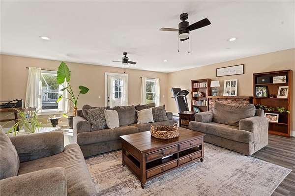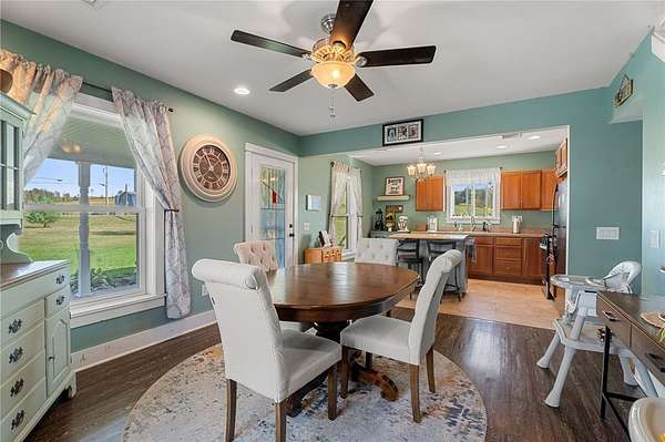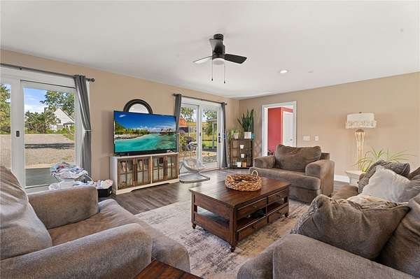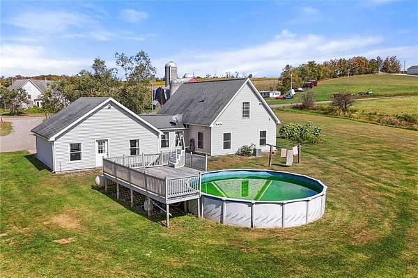 Tucked away on 5 peaceful acres in Candor, this home offers all the space and comfort you've been dreaming of, with a detached income apartment and easy access to everything the Southern Tier has to offer. Step inside to a welcoming entryway, where the home opens to the right with a family room and to the left with the main living quarters. The living room is highlighted by a cozy electric fireplace, tall ceilings, and natural light filling the space. An open kitchen and dining area flow together with sliding doors extending the living space onto the covered front patio, a spot you'll quickly make part of your morning routine. Designed for easy living, the main floor features a comfortable primary suite with a spacious bathroom that boasts a standalone soaking tub, walk-in shower, and a double vanity. This level also has the convenience of main-floor laundry and a half bath. Upstairs, offers two additional bedrooms with ample storage, and a full bath. Outside, the property continues to impress with a detached one car garage and accessory apartment or guest suite, complete with its own driveway, septic, and utilities. This thoughtfully planned single-level living apartment offers a flexible great room, primary suite, plus an additional bedroom and bathroom. A deck and partially fenced yard provide extra privacy from the main house, creating a quiet area for guests or renters. Enjoy gathering in the open green space that surrounds you, where the evening brings the chorus of peepers by the pond, while sunny days invite you to relax poolside. Whether you're looking for extra space, rental income, or just a peaceful place to call home, this property has it all.
