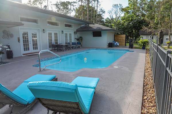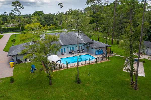 Welcome seasonal rental in Wellington Equestrian community, this Turnkey fully furnished single family home with private pool and patio for your enjoyment, large patio featuring fire pit to enjoy starry night by the fire after a day of sport and sun. A fabulous 32-foot long front porch with tongue grove ceiling and old Chicago brick flooring overlooking manicure front yard. The new kitchen comes equipped with island seating by quartz counter top and dining table for 6 guests to enjoy fine dining or cocktails with friends and family. Equipped with brand new black stainless steel appliances, cookware and dishes for all your cooking and entertainment needs. Tastefully decorated spacious 3 bedroom 2.5 bathroom home with vaulted ceiling wood panels floors and fire place for colder nights, 38-foot long loft overlooking the great room, pool and beyond. The property is situated on 2 acres of land, horse trailers and trucks are welcome, plenty of parking space, no community restrictions. Little Ranches is a secluded Equestrian community conveniently close to everything urban but far enough away to enjoy the serenity of country living, community is also a home to many equestrian ranch owners where some of them offer stables for rent in a walking distance from the property. This community is located just minutes drive from WEF Winter Equestrian Festival and POLO Grounds. All utilities, internet, wifi, lawn service, pool service, linens, towels, body wash and shampoo are provided.