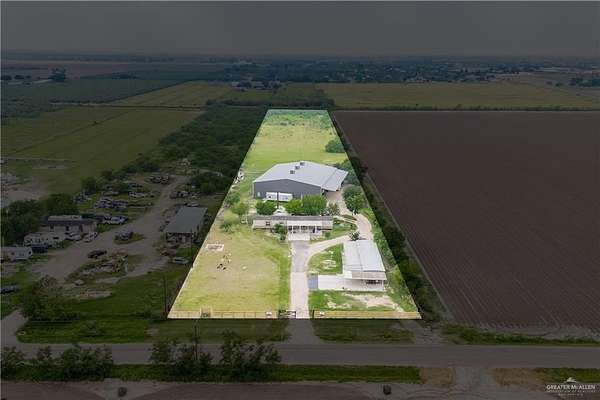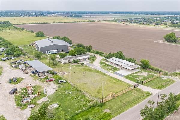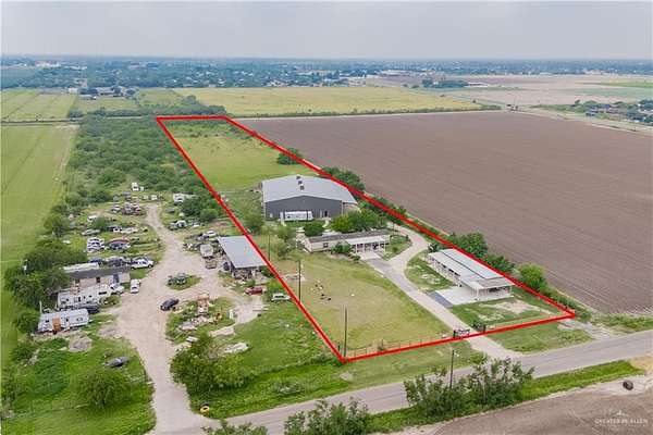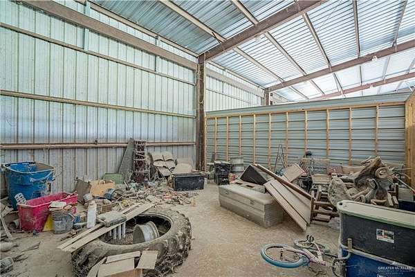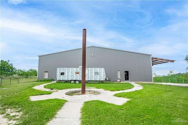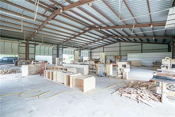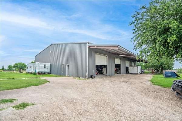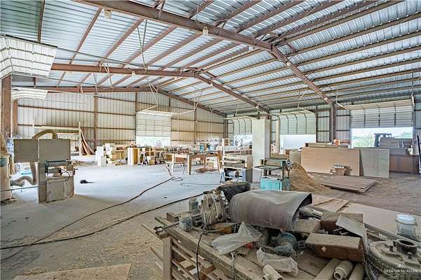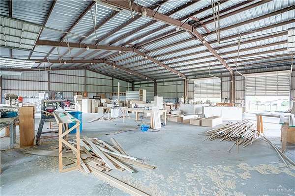 Warehouse with 4.60 acres for sale in county, Donna area. Frontage 165 sqft. This massive 8,364 sqft warehouse plus an additional 1,836 sqft of covered canopy is ideal for storage business needs, workshop, building materials, you name it! Turn this into your business right in your own backyard. Bring your mobile home and park it next to your business, as this property has installed 4 septic tanks. 2 in the front and 2 in the warehouse. The warehouse has plumbing ready to be connected, and a space to make bathrooms and an office, city water and irrigation from canal. The entire 2017 building is built with aluminum, metal roofing, solid built with 25 ft ceilings, and 80x100 in size. 7 manual pull up doors give you access to drive vehicles comfortably, with a clearance of approx. 14x14. Warehouse has electricity throughout. Fenced all around, with wood and smooth wire around the entire perimeter of the property. Lines go back all the way to the canal. AG exemption 3.14 acres