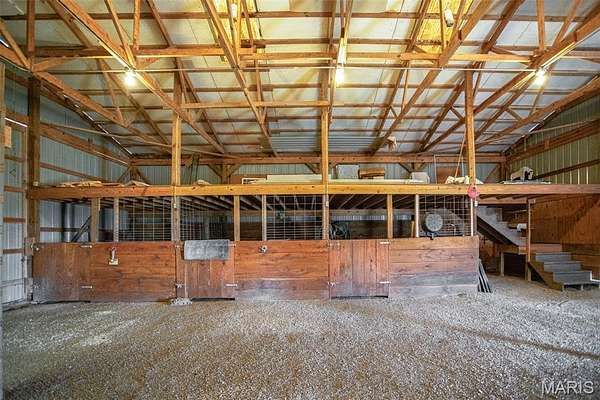 Set on 9.05 acres of gently rolling landscape, this exceptional four bedroom, three full bath home offers space, comfort, and versatility ~ perfect for enjoying both the indoors and outdoor living spaces. The property includes two outbuildings, both equipped with electric, one featuring three horse stalls and a workshop area with concrete floor. This is ideal for a hobbyist or person with livestock or extra storage needs. Inside also does not disappoint the home is thoughtfully designed with three bedrooms on the main floor along with laundry right off of the two car garage and an additional bedroom in the lower level. Spacious bonus room in lower level walkout has egree window - with the addition of a closet, this would be perfect for a fifth bedroom or just flex space. The kitchen has granite counters, and SS appliances that are included. The L-shaped dining/living room share a gas fireplace, and an office full of natural light rounds out the main level. The lower level is sure to please with an open family room that walks out to two patios. There is ample storage and a home theater room with all equipment to stay. Also included in the sale is a water softener and Beam central vac. Don't miss out on this home!