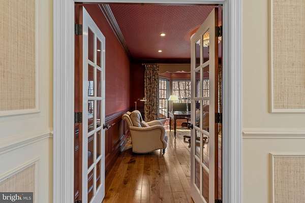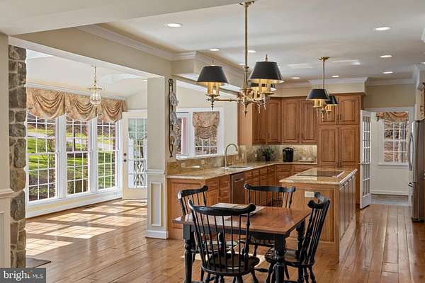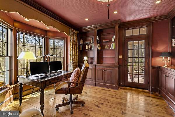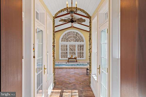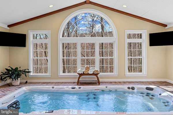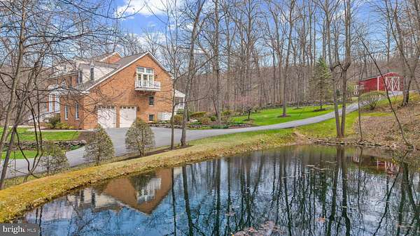 Privately nestled on 15.74 scenic acres in Sabillasville, this exceptional custom all-brick estate offers timeless architecture, refined craftsmanship, and peaceful seclusion. With 4,080 square feet above grade, 4 bedrooms, 3.5 baths, and over 6,000 square feet of total space, the home has been meticulously maintained and extensively improved. A winding paved driveway passes the pond, mature trees, and beautifully maintained grounds, creating a memorable approach to the stately residence. Inside, rich chestnut hardwood flooring, extensive millwork, designer finishes, and oversized windows fill the home with warmth and natural light. The main level is designed for both elegant entertaining and comfortable daily living, centered around a renovated kitchen with custom cabinetry, expansive granite countertops, premium appliances, a large center island, and seamless flow to the adjoining gathering spaces. The breakfast area and sunroom enjoy beautiful views, while the soaring great room features dramatic arched windows and striking architectural detail. A richly finished library complete with custom cherry cabinets and built-ins, walnut mouldings and walnut doors, offers an exceptional office or retreat, and the formal dining room provides a classic setting for entertaining. Upstairs, spacious bedrooms include a generously sized primary suite with sitting area, private balcony access overlooking the pond, large walk-in closet, and a light-filled bath with soaking tub and separate shower. Secondary bedrooms are well proportioned and inviting. A standout feature is the custom swim spa addition, accessed through a mahogany arched Colonial entry door and connected by a breezeway with barreled ceiling. Stone archways crafted from Greenschist stone sourced from the property add distinctive character. The spa retreat offers soaring ceilings, arched windows, heated tile floors, and tranquil landscape views. Covered porches, brick walkways, stone accents, an expansive terrace, and a red barn/outbuilding further enhance the estate setting. The walkout basement offers over 1,922 square feet of unfinished space ready for a future guest suite, theater, fitness studio, wine room, recreation area, or additional entertaining space. Notable updates include the high-end kitchen and butler's pantry renovation, custom library conversion, HVAC upgrades, roof replacement, upgraded insulation, whole-house Generac generator, water treatment and security enhancements, paved driveway improvements, masonry and chimney work, and the custom swim spa and breezeway addition. 6613 Browns Quarry Road is a rare offering where timeless design, meaningful updates, and an exceptional natural setting come together in a property of lasting distinction.