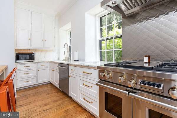 - Built-In Microwave, Built-In Range, Central Vacuum, Dishwasher, Double Oven, Dryer, Gas Oven/Range, Six Burner Stove, Stainless Steel Appliances, Washer