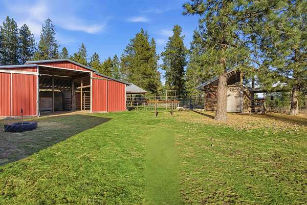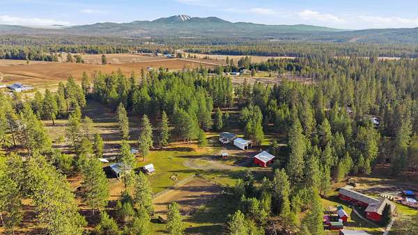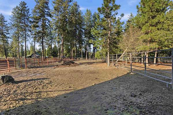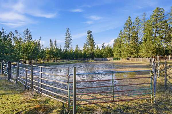 Enjoy country living on this turnkey, horse- and livestock-ready acreage just 25 minutes north of Spokane. Fully fenced perimeter and a host of outbuildings including a functional barn, expansive horse barns, multiple pens, dual run-in shelters, a private riding arena, dedicated chicken coop, a 3-bay equipment shed, oversized detached garage, storage shed, and hay bale conveyor. The center of the property is a meticulously maintained 3-bedroom, 2-bath home featuring a cozy wood stove, a skylight in the primary bedroom, and fresh paint and new flooring throughout. Practical upgrades include underground power to barns and sheds, seven frost-free buried hydrants for year-round water, and a large insulated pump house. Quiet rural setting with easy access to rivers, lakes, and outdoor recreation - perfect for a hobby farm, equestrian center, or peaceful retreat.