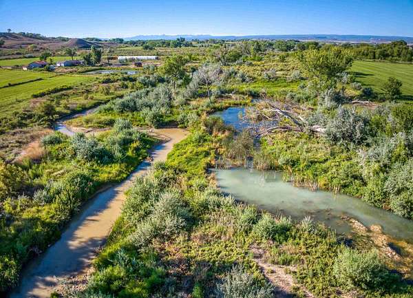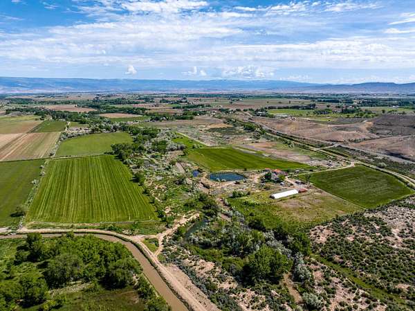 Exquisite land opportunity in Montrose County. This parcel is 46.6 acres of prime farm ground with Dry Creek running the entire length of the property. There are 5 ponds on the property; the largest is deeded 3 acre feet of water storage. The waterfront and ponds allow a sanctuary for waterfowl. 38 Shares of UVWUA irrigation water. Established and utilized hay fields are currently leased for the 2024 growing season. Tucked in and secluded; this is a private piece of paradise. Property has unlimited possibilities and potential. 1999 triple wide 2444 sq ft mobile is on the property. Mobile home is in need of repairs; but is used as the primary residence currently. There is a 30x130' greenhouse as well as a large workshop/garage with 3 garage doors. Other outbuildings include a primitive guest cabin wired but not hooked to electricity. Underground insulated food cellar; chicken coop; and storage shed.