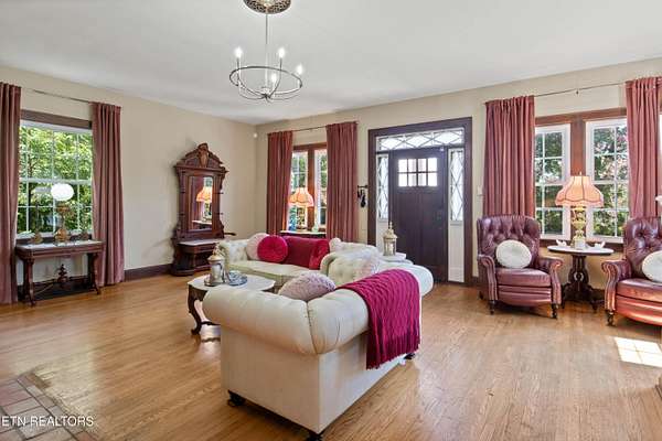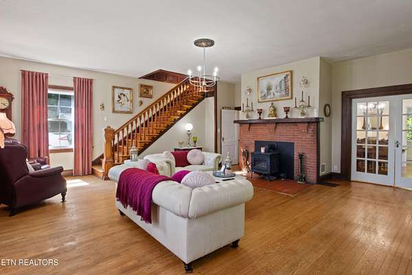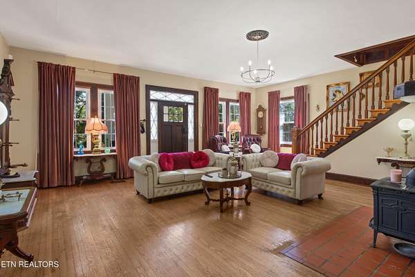 This property is a great blend of Traditional Architecture, with privacy on a 5 Acre lot having Mountain Views. While being Convenient to Downtown, UT and Maryville. This home features Hardwood and stone flooring, beautiful woodwork with custom details with high ceilings throughout. Updated lighting and Windows. Upgrades to the HVAC with 2 Units and 2 mini split units. The Main Floor holds Formal and Informal Living Spaces. A Full Bath and Laundry Room. An adorable flex space and 2 covered porches. Along with a 2-car garage and storage. The second-floor features 3 unique bedrooms each with custom details. An office or nursery room. And the original marble bathroom. There is a 3rd floor walkup attic for storage. The Basement level is a walk out with 3 access points and some windows. Featuring 5 storage areas or possible expansion opportunities. These types of properties are rare to the market and offer a variety of living options. The Property has approximately 1 acre cleared and 4 wooded that can be used if desired. There is a total of 5544 sq feet of space under roof. And 619 sq feet of covered outdoor space. The house has a large footprint for flexible function. Property is equipped with audio and video monitoring equipment. Propane tank is seller owned and will convey. Water Softener System will not convey.