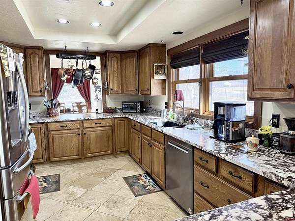 Aaron Tobler, RE/MAX Alpine View, C: 970-275-0780, aaron.tobler@gmail.com, www.crenmls.com: Discover your slice of convenient country living just south of Montrose. A rare opportunity to own a thoughtfully updated home on just under 4 acres with breathtaking south-facing views across open pastures to the majestic San Juan Mountains. This charming 4-bedroom, 2.5-bathroom residence offers 2,216 square feet of comfortable living space, highlighted by stunning hardwood floors that flow through the main areas, creating a warm and timeless ambiance. Recent upgrades include a brand-new metal roof (2025) for lasting durability and brand-new granite countertops (2025) that elevate the kitchen to modern tastes. Step outside to enjoy beautiful mature landscaping that surrounds the home, providing privacy, shade, and year-round appeal. With no HOA or covenants to restrict your lifestyle, this property is perfectly set up for horses or any other animals complete with irrigation water rights to keep the pastures green and productive. The attached 2-car garage offers everyday convenience, while the additional detached garage/workshop features a wood-burning stove, 220 power, and multiple doors providing abundant storage for vehicles, equipment, hobbies, or livestock needs. Just minutes from the south Montrose shopping center, you’ll enjoy easy access to amenities while embracing the peaceful, open feel of rural living with panoramic mountain vistas right from your doorstep. Whether you’re seeking a family homestead, a hobby farm, or a serene retreat with room to roam, this home delivers the best of Western Colorado living…Call today for your private showing!