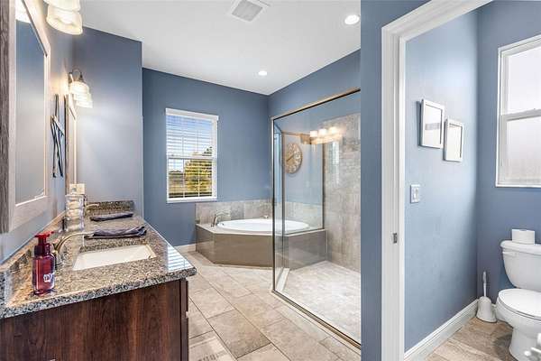 - Ceiling Fans(s), Open Floorplan, Solid Surface Counters, Solid Wood Cabinets, Split Bedroom, Stone Counters, Walk-In Closet(s), Window Treatments