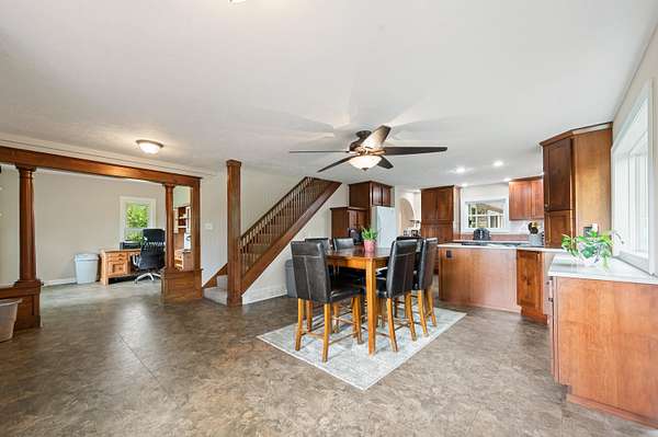 A large farmhouse in the country. Over 5 acres of land to roam. A steel roof, updated interior and exterior, an attached garage, multiple outbuildings. Gorgeous views of the countyside. Only 10 minutes from town. All of the checked boxes you have been looking for are here, your wait might be over! You will love the main floor master suite, the solid surfac e countertops, and the expansive outdoor deck area! Space for your mini farm, and for the kids and pets to roam. Set up your personal tour today!
