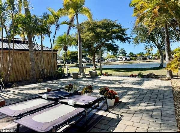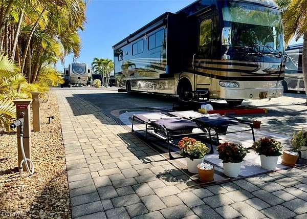 Discover Your Slice of Paradise at Gulf Waters RV Resort This exceptional lake front RV lot offers an unparalleled opportunity for those seeking a luxurious outdoor lifestyle, just minutes away from the stunning shores of Fort Myers Beach, Sanibel, and Captiva Islands. This prime lot is not only ready for your RV but also boasts a host of amenities designed for relaxation and recreation. Recently enhanced with an expanded paver patio area and lush landscaping, this RV lot is a true gem. It is golf cart and pet-friendly, making it the perfect spot for families and animal lovers alike. Gulf Waters RV Resort is a premier destination, offering a wealth of amenities including a spacious clubhouse, a heated pool and spa, and a lively poolside tiki bar that operates during the season. Enjoy a game of pickleball on one of the eight courts available, or take advantage of the on-site laundry facilities, complimentary Wi-Fi, and varied electrical service options (20/30/50 amp) along with cable access. Imagine spending your mornings watching breathtaking sunrises over the lake, taking refreshing dips in the heated pool, or sipping cocktails at the tiki bar while enjoying live music. Gulf Waters RV Resort is designed for both social engagement and peaceful retreats. Participate in a wide array of scheduled activities or simply unwind with new friends in this welcoming community. Conveniently located just 4 miles from the beautiful Fort Myers Beach, the resort provides easy access to local attractions. You can stroll to the nearby trolley station, hop on a trolley, or explore the area on your bicycle. The resort is also in proximity to a variety of restaurants, shops, and entertainment options, ensuring that you have everything you need at your fingertips during your stay in this tropical paradise. The community itself is fully gated, enhancing your security and peace of mind. You'll find recycling bins and dumpsters conveniently located near the clubhouse, making it easy to maintain a clean and eco-friendly environment. The RV lot includes a sturdy cement slab, complete with electric and water hookups, making it ready for your immediate enjoyment. Don't miss out on this incredible opportunity to own a gorgeous RV lot at Gulf Waters RV Resort. Experience luxury RV living in a peaceful and picturesque setting, with the beach just a short drive away. Whether you are looking for a seasonal getaway or a permanent residence, this property has it all. Embrace the lifestyle you've always dreamed of-schedule your visit today and take the first step towards making this beautiful RV lot your own!