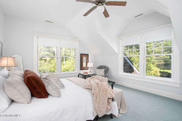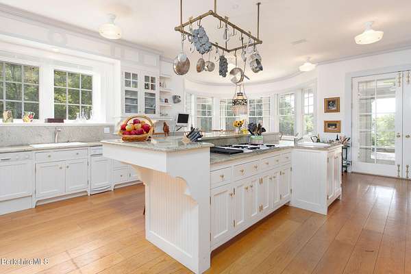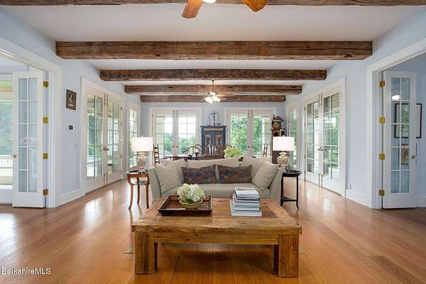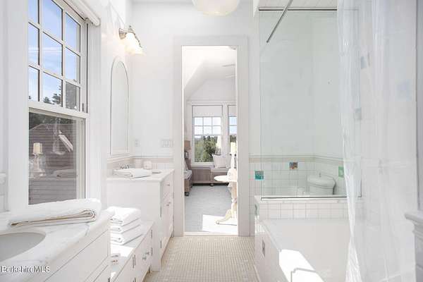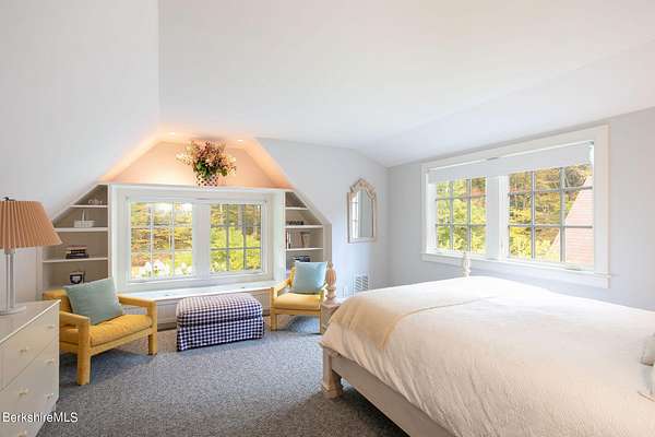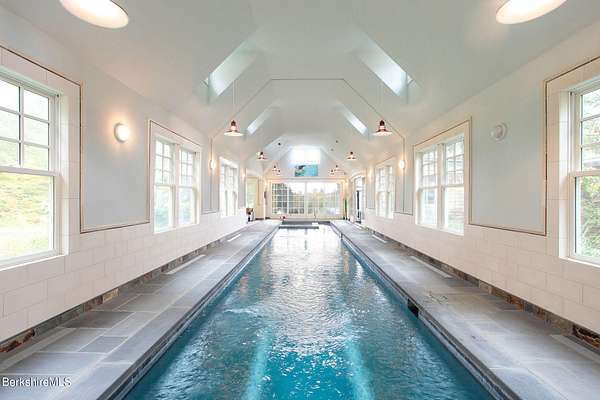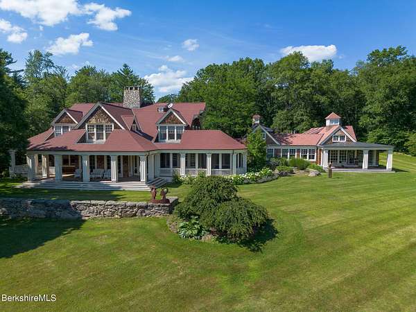 Iconic only begins to describe this union of sophistication & natural splendor. 40+ secluded acres of rolling meadows, forested trails, & sweeping mountain views, this remarkable estate has welcomed world-renowned artists & hosted unforgettable gatherings, from summer soirees to intimate retreats.At its heart is the Great House--a 6,000 sq. ft. architectural masterpiece by architect Allan Shope. Thoughtfully placed within the landscape, the residence reveals itself at the end of a winding drive. Inside, soaring ceilings, an open & airy floor plan, & an indoor pool create an atmosphere of timeless elegance.With 5 bdrms, 7 bths, & separate guest quarters the home is designed for both hospitality & privacy.Every detail reflects Shope's vision of blending modern design w/ nature-meticulous craftsmanship, the finest materials, & dramatic vistas from every angle. Outdoors, meadows, mature gardens, & a peaceful stream invite you to slow down unwind, & embrace the serenity of the Berkshires.
