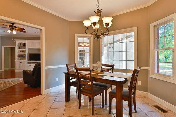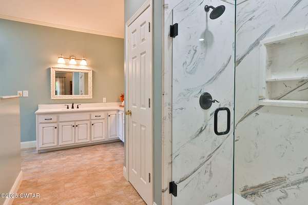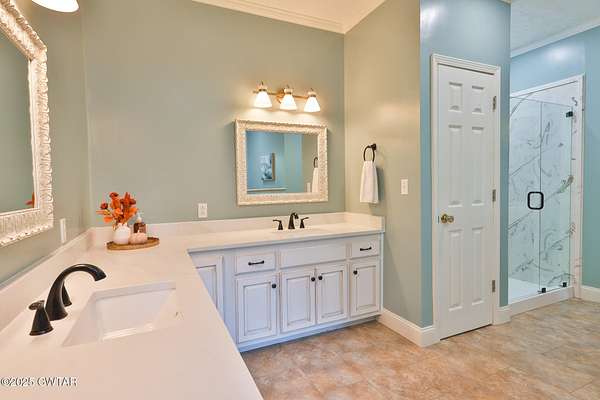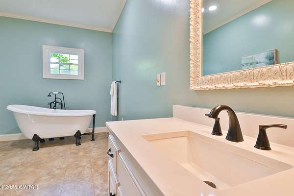 - Ceiling Fan(s), Double Vanity, High Ceilings, Soaking Tub
