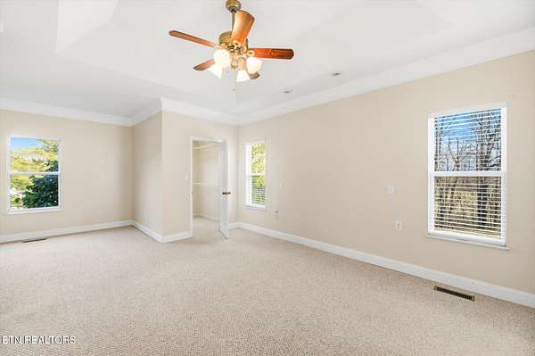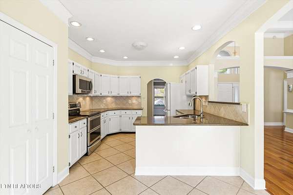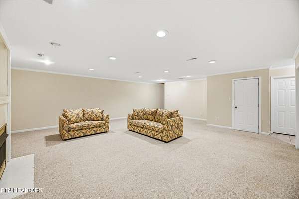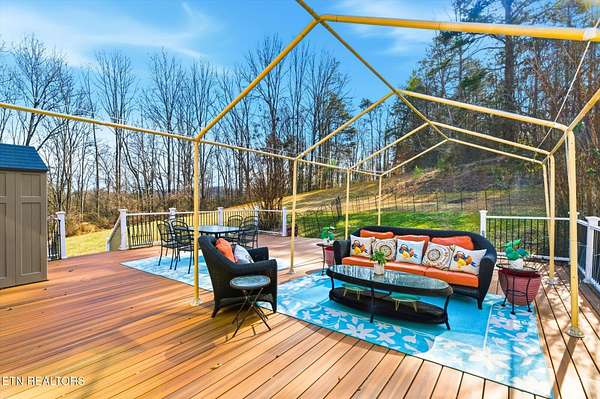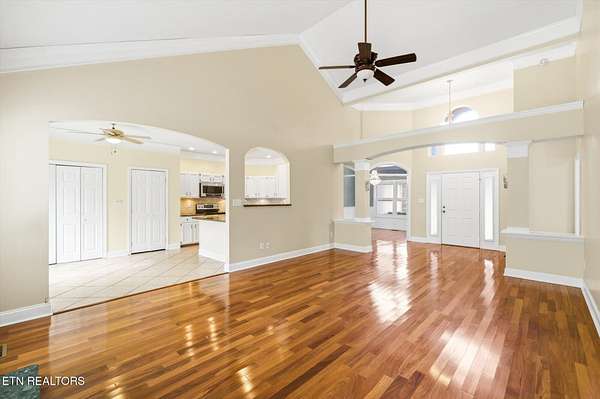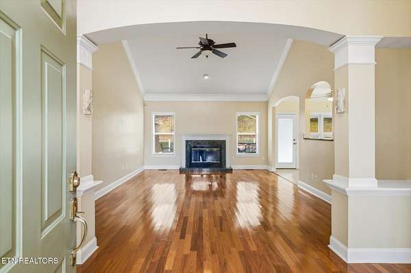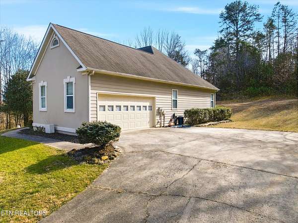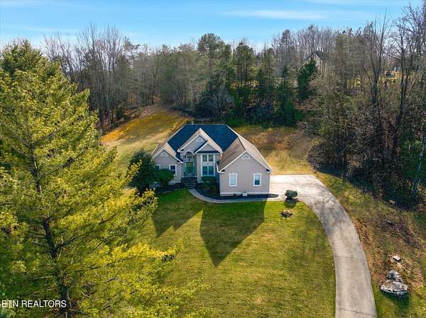 Tucked away in an established subdivision surrounded by a peaceful rural setting, this exceptional home sits proudly at the top of a private 2.13-acre cul-de-sac lot, offering both privacy and presence. A long, tree-lined approach leads to the property's two separate driveways - one guiding you to the main-level two-car garage and the other to the additional two-car basement garage, providing a rare total of four garage spaces. Exterior up lighting and stone steps welcome you to a grand front entrance that sets the tone for the thoughtful design found throughout. Inside, expansive vaulted ceilings soar above the living room, where a gas fireplace with a granite surround serves as a stunning focal point. Well-maintained hardwood floors, abundant natural light, and oversized windows create a warm and inviting atmosphere. The formal dining room is beautifully appointed with arched doorways and an elegant chandelier, while the spacious eat-in kitchen offers timeless white cabinetry, granite countertops, tile backsplash, under-cabinet lighting, a bar overhang, breakfast nook, and two oversized pantries for exceptional storage. A door just off the kitchen opens to a composite deck overlooking the private wooded backyard, complete with wildlife guests, storage shed, and optional canopy cover (New 12 X 26 ft canopy cover is in basement) for shaded outdoor enjoyment. The main level features three bedrooms and two full bathrooms in a desirable split-bedroom layout. The primary suite is generously sized and showcases tray ceilings, a private sitting area or reading nook, two oversized walk-in closets (one in the bedroom and one in the bathroom), an oversized garden tub, walk-in tile shower, and separate water closet. On the opposite side of the home, two additional bedrooms share a full bath, offering both comfort and privacy. The main-level garage features 10+ foot ceilings, washer and dryer hookups (with additional hookups available in the pantry in the kitchen), pull down attic access with additional storage, and a pull-down screen door with a walkout man door for added convenience without the pests! Downstairs, the finished basement expands the living space significantly, offering a massive bonus room with a second gas fireplace and custom built-ins, three large storage closets, a full bathroom, bedroom, kitchenette, and access to the additional two-car garage - ideal for guests, multi-generational living, or flexible use. Additional highlights include a water softener, Pella windows in the dining and living room, HVAC replaced in 2022, and a water heater replaced in 2022. This home offers the perfect balance of privacy, functionality, and timeless design - all within a quiet, convenient, established community setting.