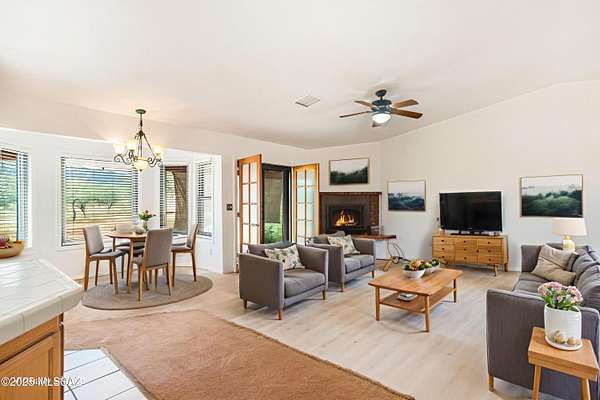 Welcome to your new desert retreat. A charming and lovingly cared for, expansive 2-bedroom, 2-bathroom ranch-style home, built in 1995, on just over 4 acres of serene desert landscape. At the heart of the home, a spacious great room offers abundant natural light, fireplace and seamless flow. The split plan provides privacy, while the expansive windows showcase sweeping mountain views of Miller Peak. Upgrades include: (2024) exterior and interior paint, foam roof (10-yr warranty), hot water heater, and owned water softener. New (2023) HVAC, primary shower (2022), owned solar and a private well. Secluded rural living, with room for horses, toys, or simply to enjoy the peace and quiet of wide-open spaces. Experience the perfect blend of comfort, privacy, and the beauty of the Arizona desert.