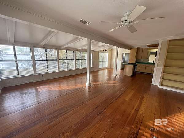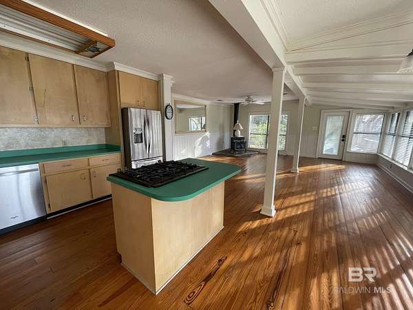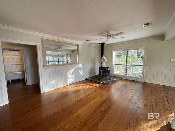 The view is everything with this 3-bedroom, 2.5 bath home on the water with over 3 acres of land!! Picturesque scenery with mossy oaks and views of the water from just about every spot. Spacious and open living room, kitchen, and dining combo with large windows allowing tons of natural light and water views. Kitchen features stainless steel appliances including a gas range, refrigerator, and dishwasher. Living room showcases and antique working wood burning stove. Massive primary bedroom that is the entire upstairs with 3 walk-in closets and a primary bath. Large family room with a wood burning brick fireplace. Beautiful wood floors throughout the home with LVP in the family room and carpet in upstairs closets. Large laundry room with washer and dryer hookups, as well as a standalone shower. Huge back yard that overlooks the bluff/water. This home has so much character that you have to see it for yourself. Pets negotiable with owner approval. 50 lbs. weight limit, max of 2 pets. $300 refundable pet deposit per pet.
