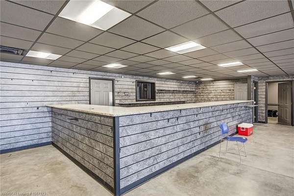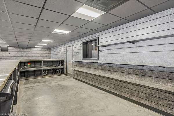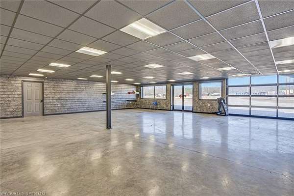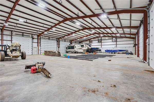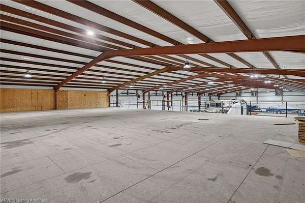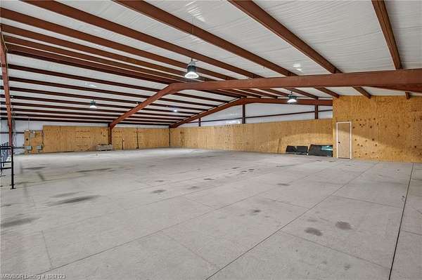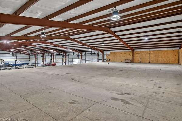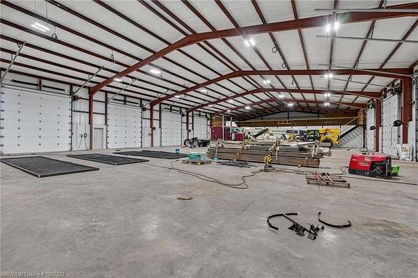 Service Garage/Warehouse with 16,000 square feet on 5.52+/- acres. 6 drive-thru bays (12 doors) with 16' electronic rollup doors. 20' sidewalls. Large showroom with service counter. Private office. One showroom restroom and one shop restroom/locker room. Parts room with shelving. Large mezzanine for storage over showroom. Excellent facility for diesel engine repair or tractor/RV dealership.