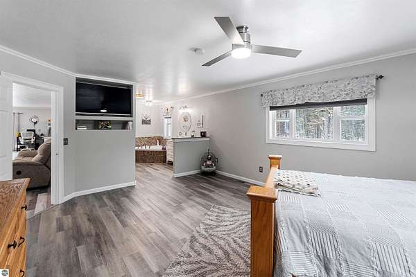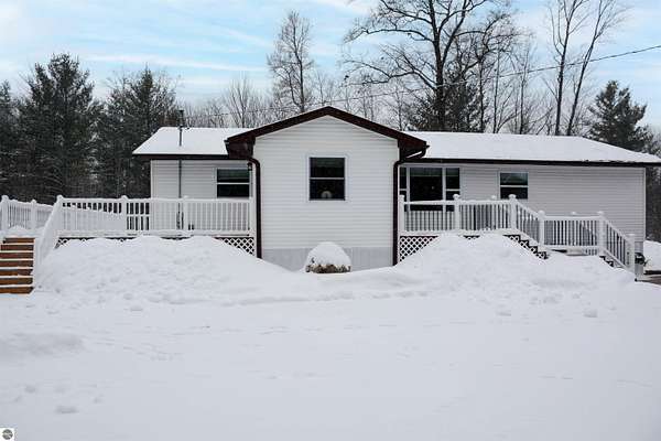 Discover this stunning large parcel nestled in Grand Traverse County, offering the perfect blend of privacy and accessibility. Ideally situated between the charming villages of Kingsley and Fife Lake, this property provides convenient access to major cities including Traverse City, Cadillac, and Kalkaska. The meticulously remodeled turn-key home features a spacious master bedroom complete with a luxurious jetted tub. The inviting great room bathes in natural sunlight and opens onto a south-facing deck, perfect for outdoor enjoyment amid a peaceful natural setting frequented by abundant wildlife. The modern kitchen boasts new appliances, abundant counter space, and ample storage solutions. A finished lower level houses the laundry facilities and an additional bedroom, providing versatile living space. The property includes a heated three-car garage, perfect for year-round vehicle protection. Set on nearly 10 acres of wooded land, this secluded retreat ensures complete privacy while offering regular sightings of deer, birds, and other native wildlife, and is just a quarter-mile from extensive state lands. Outdoor enthusiasts will appreciate the prime location for snowmobiling and ORV activities. The property showcases nature's beauty throughout all four seasons, making it an ideal Up North getaway. Despite its peaceful rural setting, all essential amenities remain within easy reach.