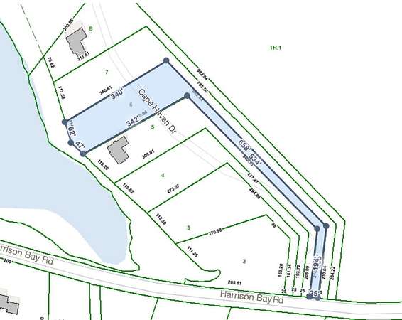 Hwy 153 to north on Hwy 58. Left on Harrison Bay road, Left on Cape haven.