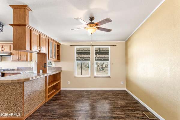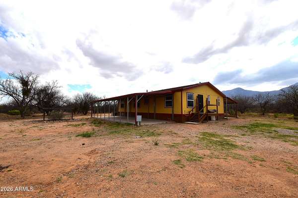Nestled on just over 4 acres, this inviting 3-bed, 2-bath ranch-style home offers peaceful country living with sweeping mountain views and abundant mesquite trees for natural privacy. Bright, open living spaces inside and two covered patios--perfect for morning coffee or evening entertaining--while a fully fenced yard provides security and room for pets or gardening, or RV parking. Practical features include a/c, an owned propane tank, a large storage shed for tools and toys, chicken/pet run, and easy outdoor access for recreation or hobby farming. Quiet, private, and move-in ready--enjoy the best of rural living with modern convenience.