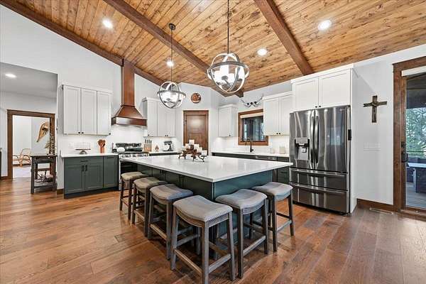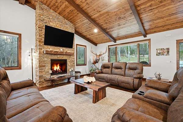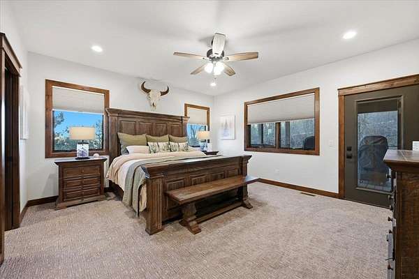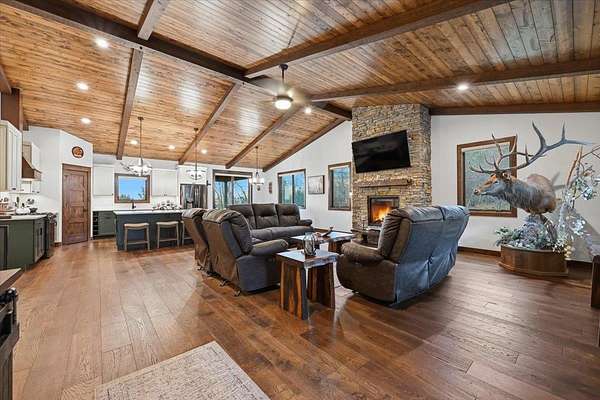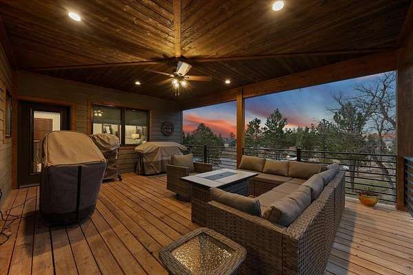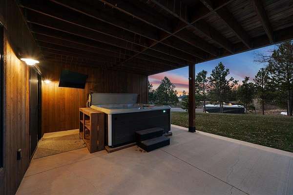 Please contact listing agents Heath Gran 605-209-2052 or Scot Munro 605-641-6482 with Great Peaks Realty. Stunning Black Hills getaway on 2.74± acres offers a perfect blend of privacy & class, centrally located minutes from Spearfish/Deadwood. Featuring 6 bedrooms, 3 baths, this breathtaking home welcomes you with a warm, rustic main-level showcasing vaulted wood ceilings, hardwood floors, exposed beams, beautiful gas log fireplace & abundant natural light flows seamlessly creating an ideal space for everyday living & entertainment! The bright kitchen features stunning cabinetry, large center island & walk-in pantry, the dining room steps out onto the expansive covered deck—perfect for taking in the views. Primary ensuite creates a relaxing retreat with heated tile floors, tile walk-in shower & walk-in closet. Two more bedrooms, bathroom & convenient laundry mud room right off the heated garage. Basement expands your living space with three large bedrooms (one includes walk-in safe room), bathroom, & dream space - open family room featuring surround sound, movie projector with true theatre elevated electric recliner seating, wet bar & game area—ideal for entertaining, plus walkout access to the backyard covered patio to relax in the salt water hot tub! Completing the property is an impressive 56x32 shop with ample space for all the toys & any hobby, making this property a true Black Hills escape. This dream home comes fully furnished, turn-key! See additional features noted -