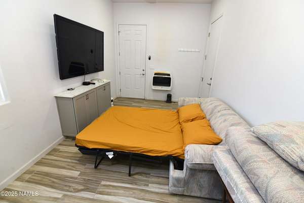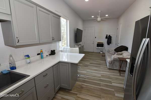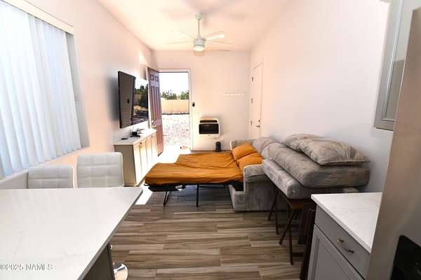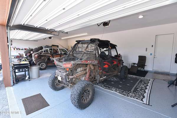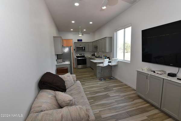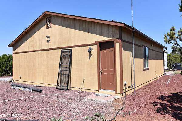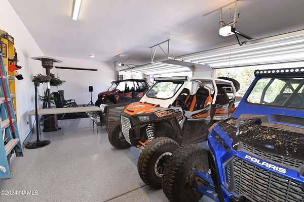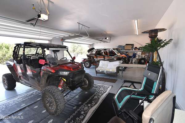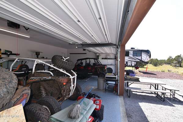 This 40x36 ft structure has a 400 sq ft efficiency 1-bed, 1-bath studio style living quarter on the back side and a 4-car garage on the front side of the building. The insulated building is on 2.1 acres and nestled in the trees. The property is located within 10 miles of Williams so going to town is easy. There are two RV hookups for guests to have access to water, septic and power. This could be a full-time home. The garage could become a house. For now, it is a great weekend getaway with lots of storage. SHOWN BY APPOINTMENT ONLY. SECURITY CAMERS PRESENT.