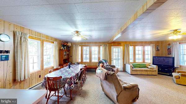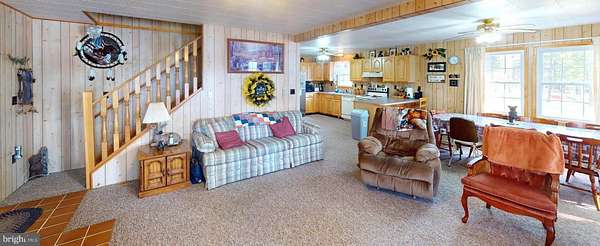 - Carpet, Ceiling Fan(s), Combination Dining/Living, Combination Kitchen/Dining, Combination Kitchen/Living, Entry Level Bedroom, Open Floor Plan, Wood Stove