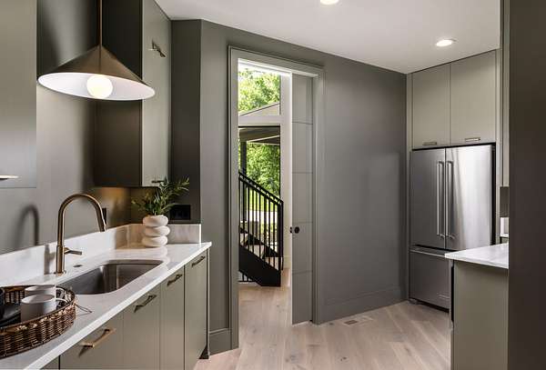The lower level elevates entertainment with a dedicated media room, stylish wet bar, and adaptable space perfect for fitness, gaming, or extended guests. The shaft and framing for an elevator are already in place, currently utilized as large closets on all three floors, allowing for easy future installation if desired. High-tech security by Preventia and integrated Sonos systems add to the home's modern convenience and comfort. Expansive terraces and a sparkling pool invite relaxation and sunset gatherings, while the three-car garage provides excellent storage and functionality.