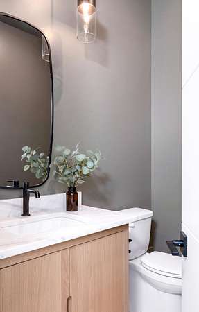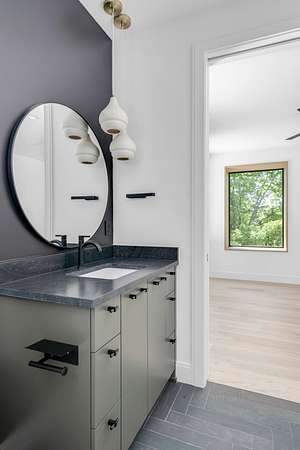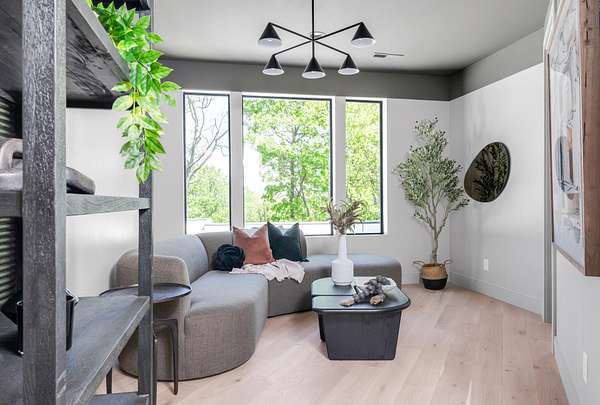 The gourmet kitchen is a true chef's dream, showcasing custom white oak cabinetry, exquisite quartz surfaces, chef-grade appliances, and a discreet hidden prep kitchen designed for catering, staging, and culinary flow. A private office with patio access offers a luxurious workspace surrounded by peaceful natural vistas. Each of the five bedrooms has been thoughtfully designed as its own retreat, featuring spa-inspired ensuite baths, timeless finishes, and captivating views across the property. Dimensions for the fifth bedroom are 15x18, providing generous space and comfort.
