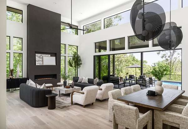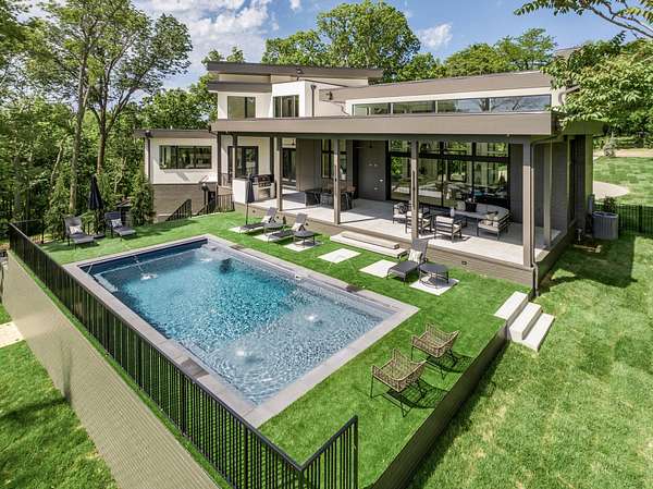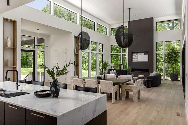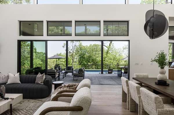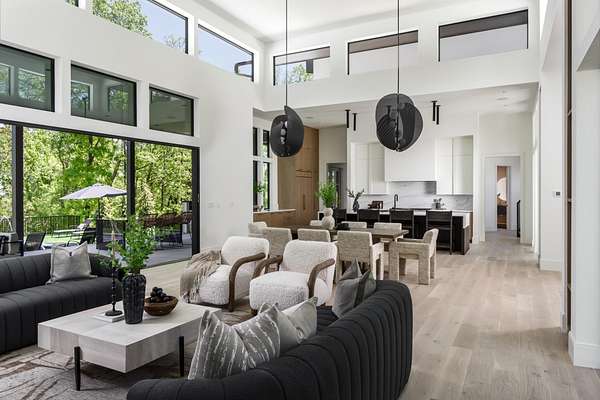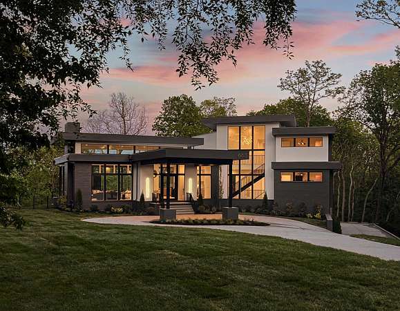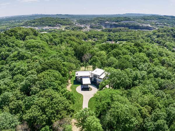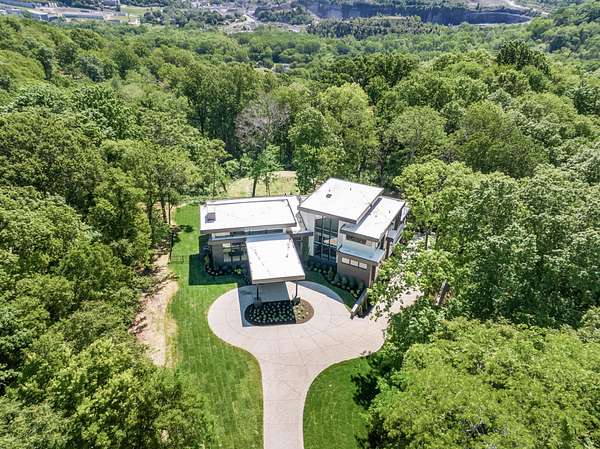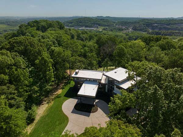 Discover unparalleled luxury and sophistication at this breathtaking ridge-top estate, perfectly positioned to capture sweeping skyline views of downtown Nashville. Set on five pristine acres, this architectural masterpiece blends modern elegance with resort-style living. Soaring ceilings and dramatic walls of glass flood the great room with natural light and open seamlessly to a covered patio overlooking the pool, creating an effortless indoor-outdoor experience ideal for both intimate evenings and grand entertaining.