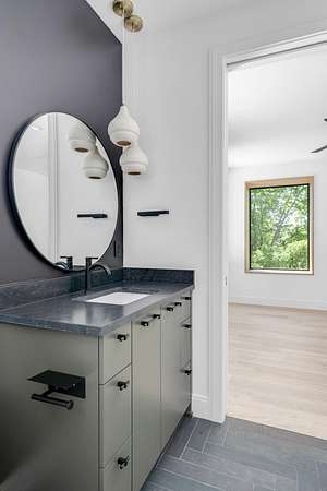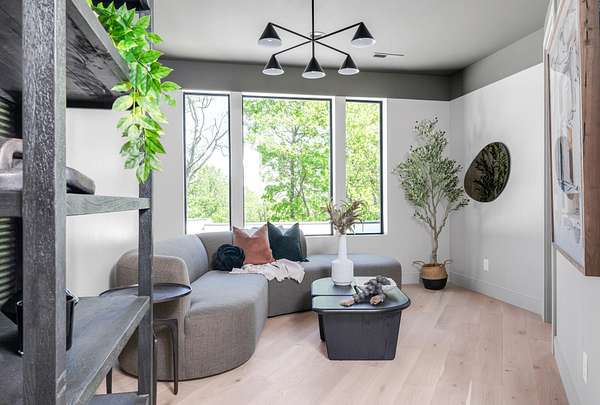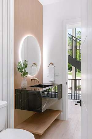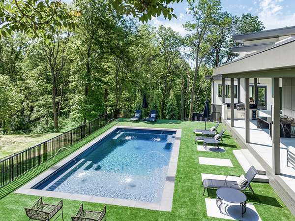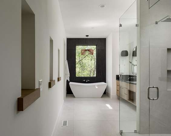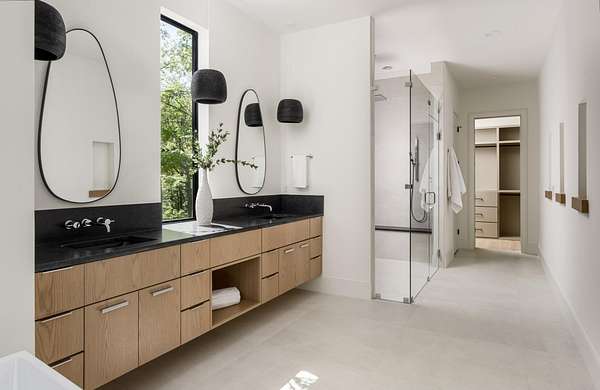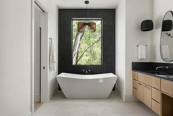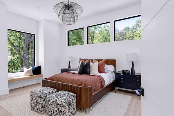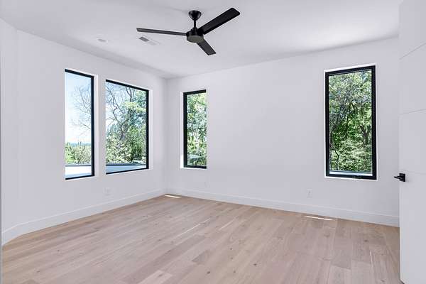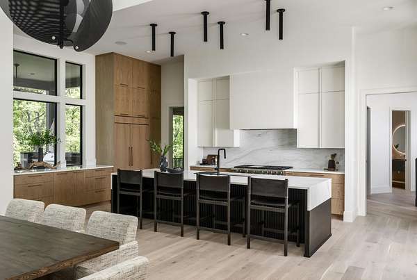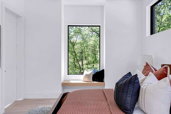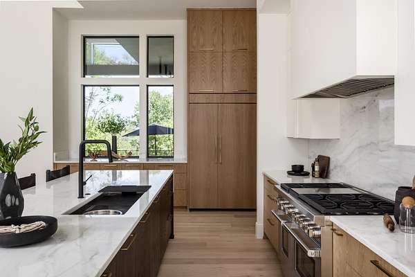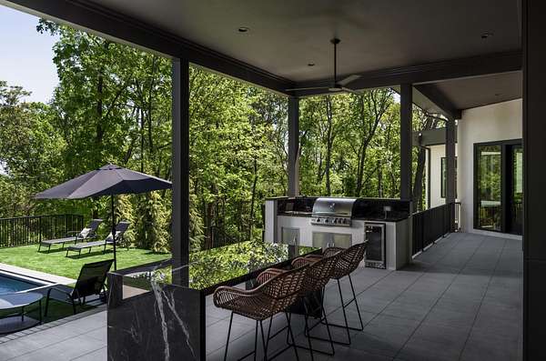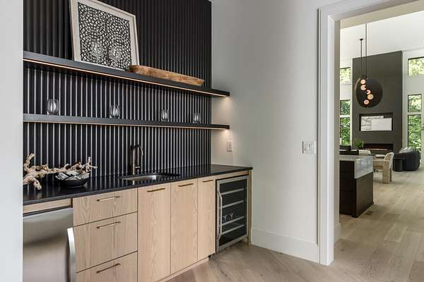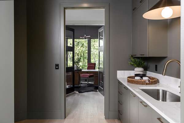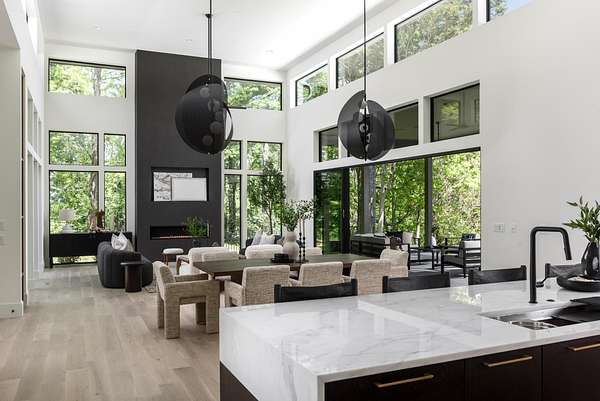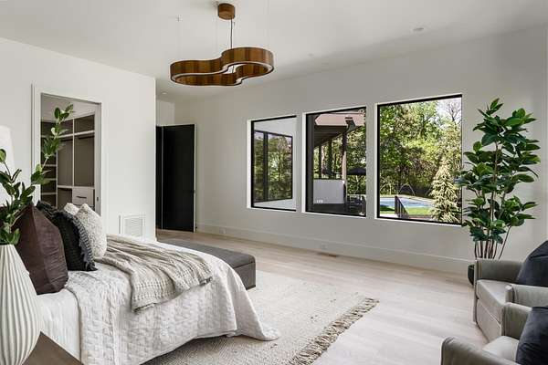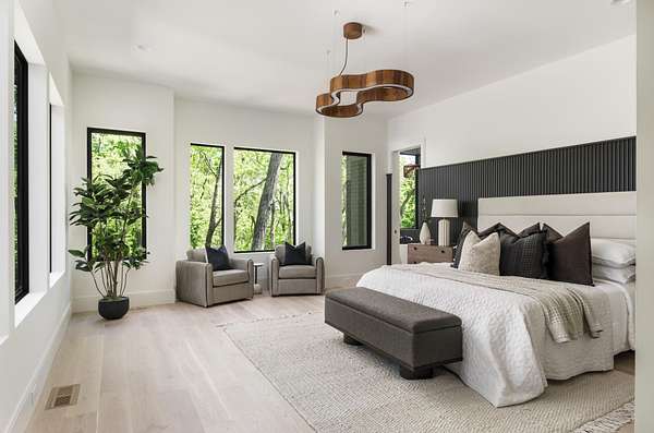 The gourmet kitchen is a true chef’s dream, showcasing custom white oak cabinetry, exquisite quartz surfaces, chef-grade appliances, and a discreet hidden prep kitchen designed for catering, staging, and culinary flow. A private office with patio access offers a luxurious workspace surrounded by peaceful natural vistas. Each of the five bedrooms has been thoughtfully designed as its own retreat, featuring spa-inspired ensuite baths, timeless finishes, and captivating views across the property. Dimensions for the fifth bedroom are 15x18, providing generous space and comfort.