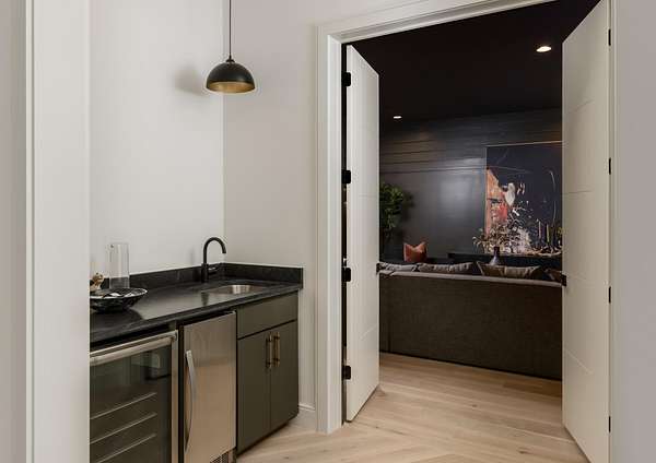 The lower level elevates entertainment with a dedicated media room, stylish wet bar, and adaptable space perfect for fitness, gaming, or extended guests. The shaft and framing for an elevator are already in place, currently utilized as large closets on all three floors, allowing for easy future installation if desired. High-tech security by Preventia and integrated Sonos systems add to the home’s modern convenience and comfort. Expansive terraces and a sparkling pool invite relaxation and sunset gatherings, while the three-car garage provides excellent storage and functionality.