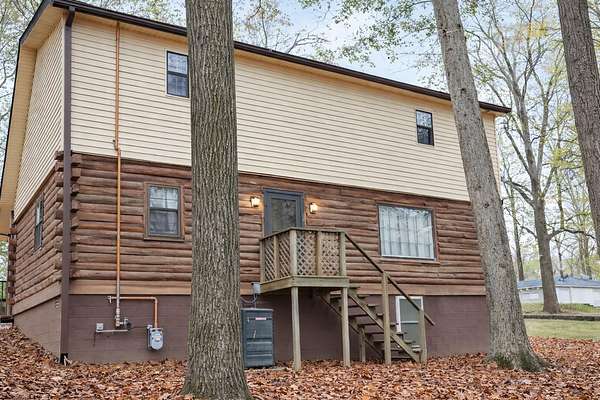 Est $842/moMOTIVATED SELLER!!! BRING ALL OFFERS!! Take a look at this cozy log cabin situated on a private shady 2 acre lot featuring a nice large screened front porch. This open concept home offers 3 bedrooms and 1.5 baths with separate laundry area. A new HVAC unit was installed in October 2025. It also features a wired, heated ,and cooled workshop and separate storage area. This one is just waiting for someone new to make it their own. Call today to schedule a private viewing.