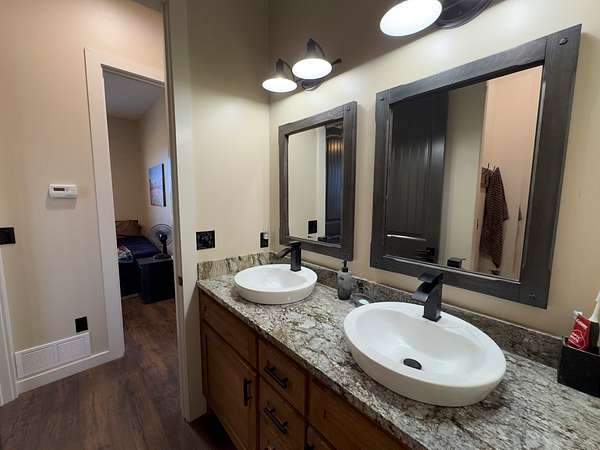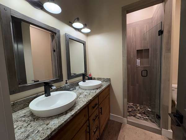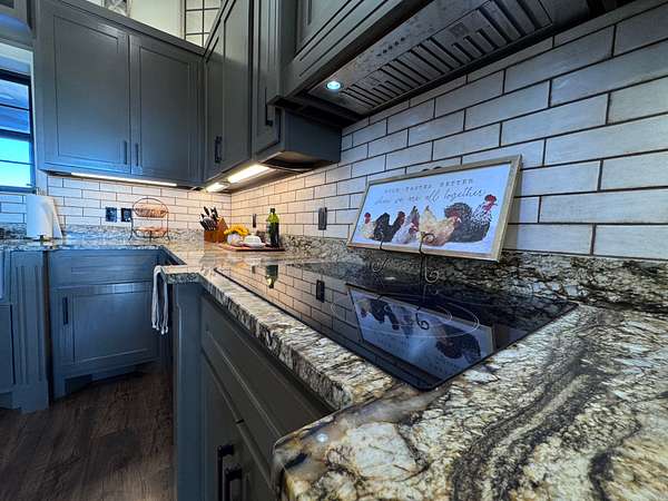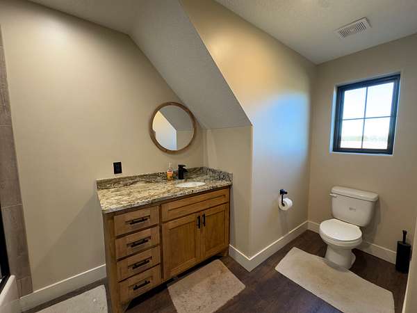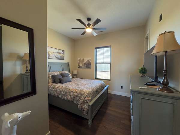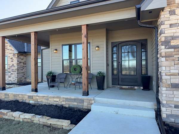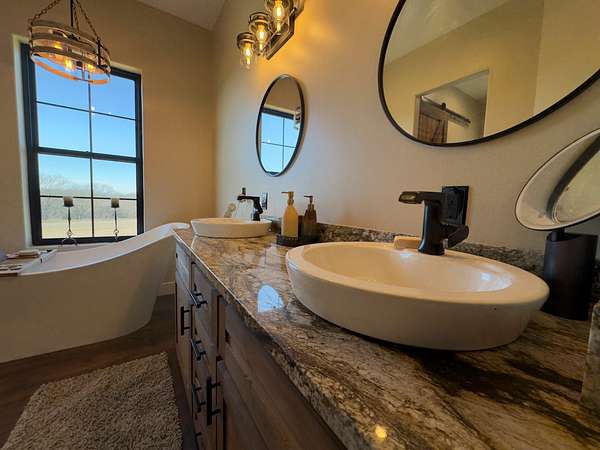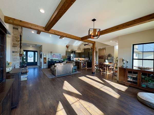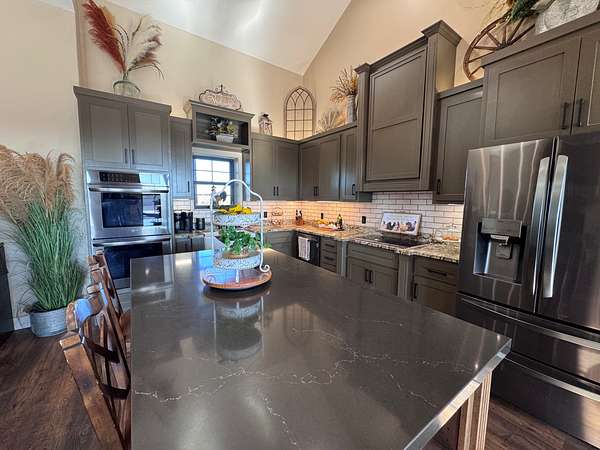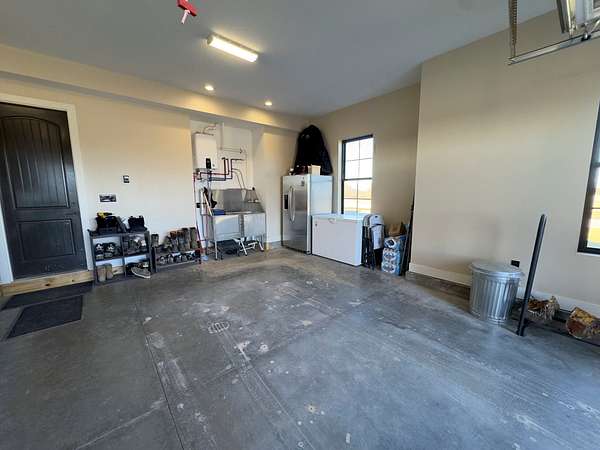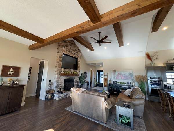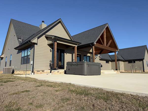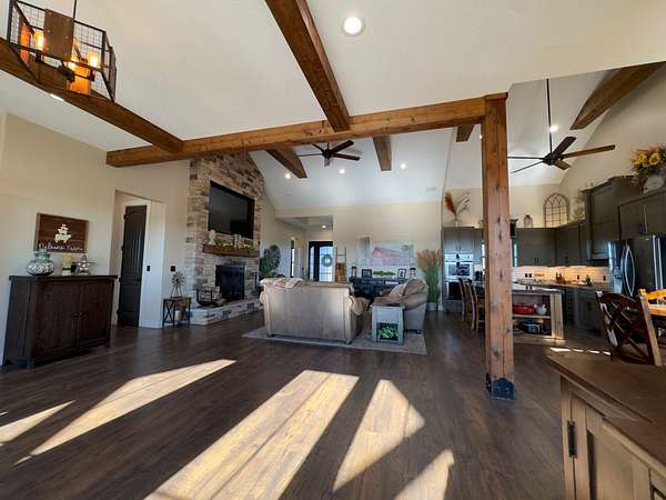 The improvements on this property include a well-designed 2,772 sq ft home featuring 4 bedrooms and 3.5 bathrooms, finished in a rustic yet modern style that feels both warm and refined. The home offers 10-foot ceilings, 8-foot doors, rounded corners, and a spacious layout with quality finishes throughout. The primary bedroom includes two walk-in closets, and the home is plumbed for gas at both the stove and fireplace. An on-demand water heater adds efficiency, while a mini-split system serves the loft bedroom for added comfort. The attached 4-car garage provides ample space for vehicles and storage, and underground electric enhances the clean, finished look of the property.