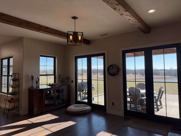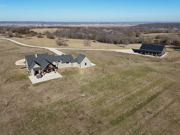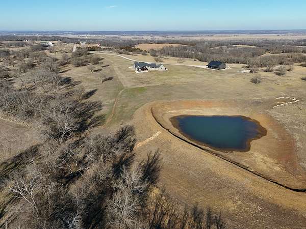 The land consists of 132 +/- acres offering a strong mix of open grass and natural features. The pasture is well-suited for hay production or grazing, complemented by rolling terrain and timbered draws that add both beauty and function. A newly rebuilt pond enhances the landscape and supports wildlife, with newly planted weeping willows along the water's edge. The home is set back from the road, creating privacy while still capturing wide, scenic views in every direction. Over the past five years, the owner has invested significant time and care into clearing trees, improving the grass, and planting more than 20 landscape trees--including oak, maple, river birch, and redbuds--resulting in a property that is both visually impressive and thoughtfully maintained.