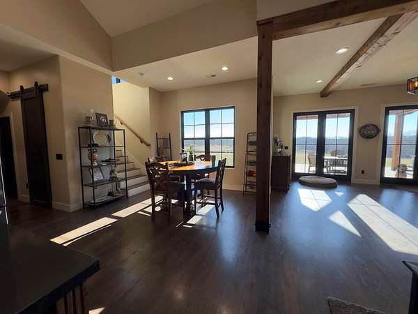 River Ridge Estate is a 132 +/- acre property offering the perfect blend of luxury living, and outdoor recreation. The ranch features a high-end home with a large shop, improved grass, rolling terrain with timbered draws, and a newly rebuilt pond that attracts abundant wildlife. Private, scenic, and thoughtfully maintained, this estate delivers exceptional views, strong agricultural use, and year-round recreational enjoyment.
